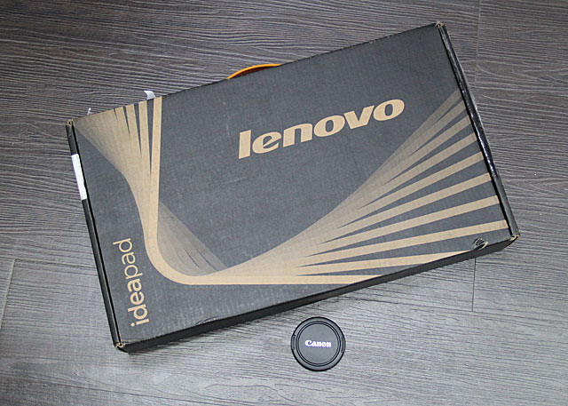 IdeaPad S300的外箱,體積大概比一般大型公事包稍大一點,下方有67mm鏡頭蓋可供參考。 |