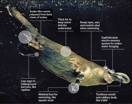 二百多年前,當第一批英國探險者從澳大利亞帶回一隻鴨嘴獸標本時,所有的科學家們簡直不敢相信他們的眼睛:身體像水獺長滿濃厚的皮毛,嘴巴如鴨嘴般寬大扁平,長著四隻腳蹼,尾巴寬厚如河狸鼠。科學家們認為這種奇形怪狀的混合物不是自然的生物。最令人難以理解的是,這種動物能像爬行動物或鳥類般產卵。卵孵出後,又能像哺乳動物般餵奶水給幼仔。這違背了科學家們已有的對哺乳動物和非哺乳動物的分類。