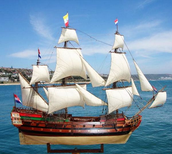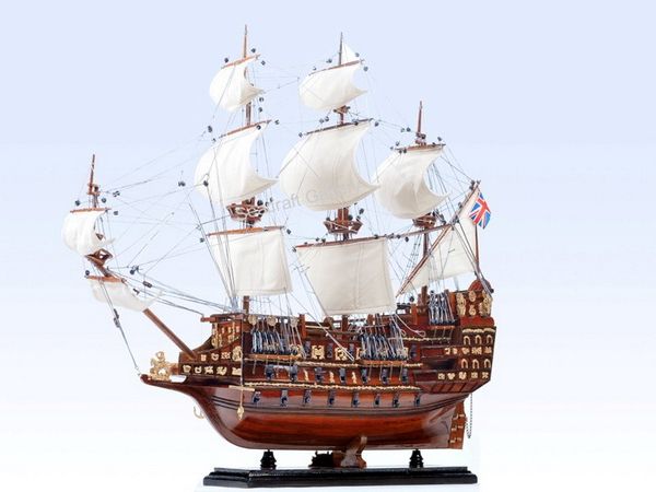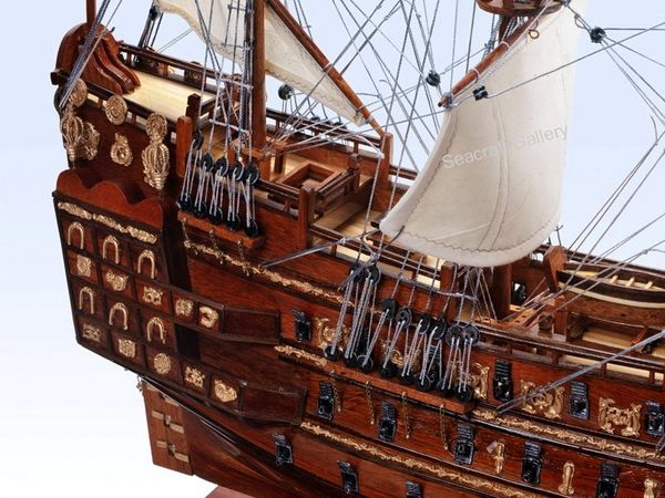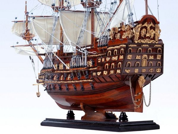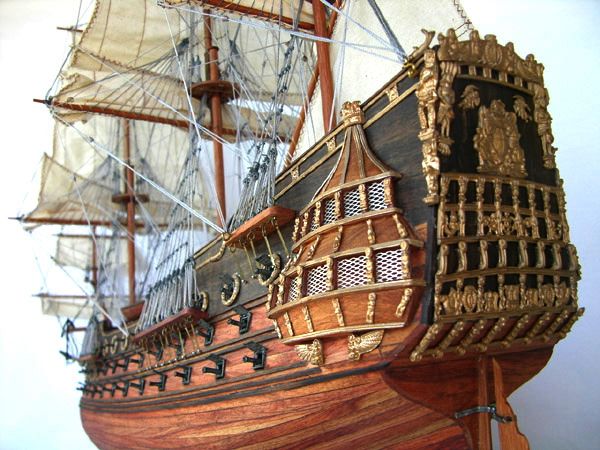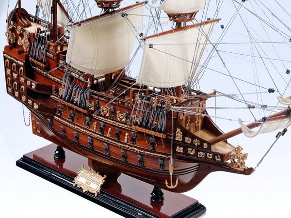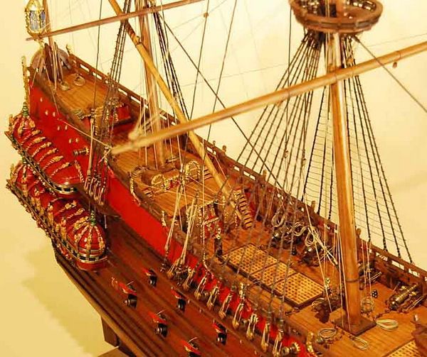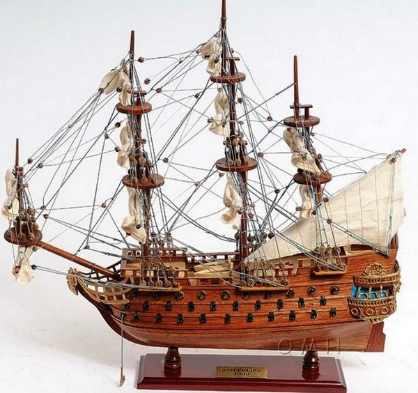 1) 無帆全帆裝模型(fully-rigged models without sails)是全帆裝模型中最普遍採用的形式。一般模型製作者普遍認為展開的帆把桅杆和索具遮擋得太多了。因此,他們選擇了類比帆船停泊狀態的陳列形式,這也是可以的。但必須注意,此時橫桁應處於較低的懸掛位置。而且,操帆的攏帆索,起帆索和帆腳索並不能因為無帆而省略。儘管沒有帆,單由桅杆,桁材,和繩索所組成精巧的網狀結構本身就有著非凡的魅力。