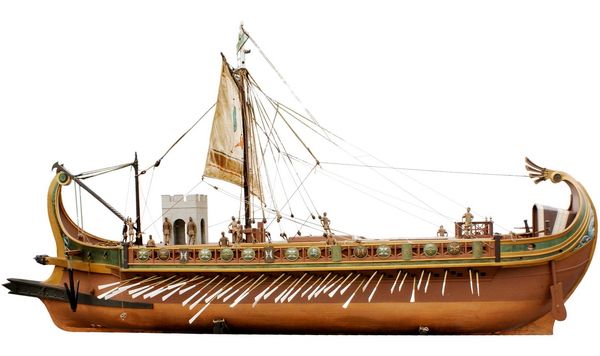2) 卷帆全帆裝模型(fully-rigged models with furled sails)。基於上述同樣的理由,部分製作者採用了把帆收卷在桁材上的表現形式。但要注意的是,在卷帆之前,先要裝備好上述三種操帆索。另外,要控制卷帆材料的分量,使得卷好帆的形態不至於過肥或過瘦。