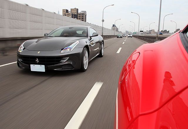 以 Ferrari Four (Four-Wheel Drive、Four Seats,四輪驅動與 4座) 之縮寫為名的 FF,雖然與圖左