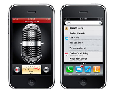 Spotlight 搜索。 iOS 的內容越來越多,基於系統的搜索功能必不可少。 Apple 終於把這個已經被黑莓、PalmOS、WebOS、Windows Mobile 用爛了的功能添加進來了:在主螢幕快速輸入文字進行搜索。一開始Spotlight 被設計在主螢幕最左邊,直到iOS 7 之後才把它隱藏起來。當時Spotlight 能搜索的結果包括聯繫人、郵件、日曆、備忘錄和iPod 音樂。後來才慢慢添加了新的搜索對象。 第三方應用的推送通知。雖然這一特性在iOS 2 發佈會就承諾過會添加的,但直到iOS 3 才算真正支援。雖然也不是 Apple 首創的功能了,但仍然比競爭對手的推送功能好很多。推送通知可以當做多任務功能的臨時替代,但是彈窗式的推送很快讓用戶感到心煩。 MMS。 Apple 還添加了對彩信的支援,雖然2009 年中人們對彩信已經感覺可有可無。 iOS 3 是 Apple 將別人有的功能更完善地添加進來的時機,包括視頻錄製、橫屏鍵盤、語音備忘錄、遠程清除、藍牙音響、利用藍牙或USB的網絡共享。 Apple 還添加了不再新鮮的凡是智能手機都有的語音撥號,但公平地講, Apple 的語音不僅僅是撥號,還支援語音控制音樂的播放和停止。語音控制功能剛一發佈就能支援許多種語言,當時的iOS 也擴大了支援的國家語言。