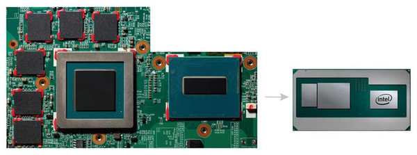 此圖片為 Intel 即將推出,內建 GDDR5 圖像記憶體、AMD Radeon 圖像處理器和 Intel 第 8 代 Core 處理器的新處理器。