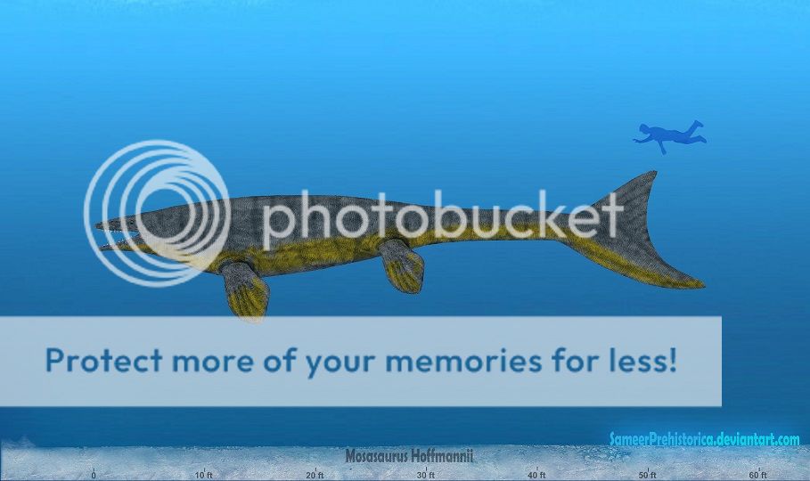 Mosasaurus is a genus of mosasaurs, extinct carnivorous aquatic lizards. They are some of the fearsome predators to ever inhabit the oceans. Mosasaurus was also more robust than related mosasaurids. The skull was more robust than in other mosasaurids, and the lower jaws attached very tightly to the skull. They had deep, barrel-shaped bodies, and with their fairly large eyes, poor binocular vision, and poorly developed olfactory bulbs. The largest species Mosasaurus hoffmanni reached 15 - 18 m (50 - 60 ft) in length and weighed about 15 - 20 tonnes.