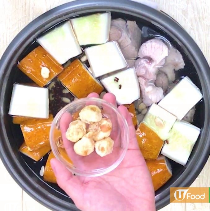將其餘乾貨材料洗淨。水滾後加入所有材料後轉小火煲2-3小時。