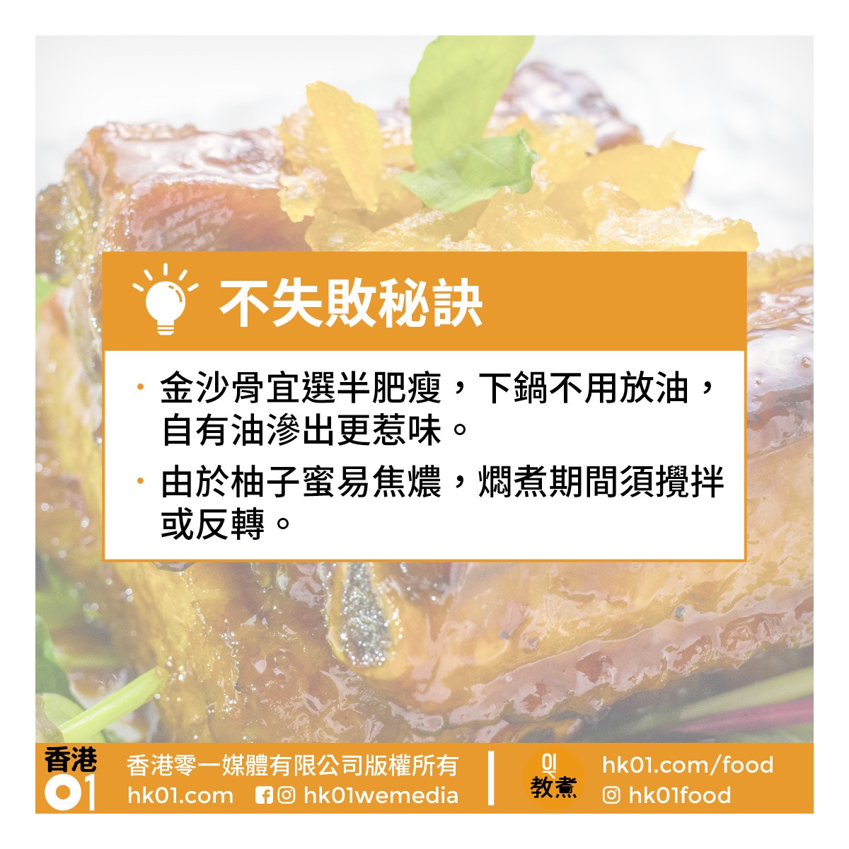 [食譜分享] 轉載 :【排骨食譜】蜜糖醬燒金沙骨焦香惹味 毋須焗爐效果似叉燒 |