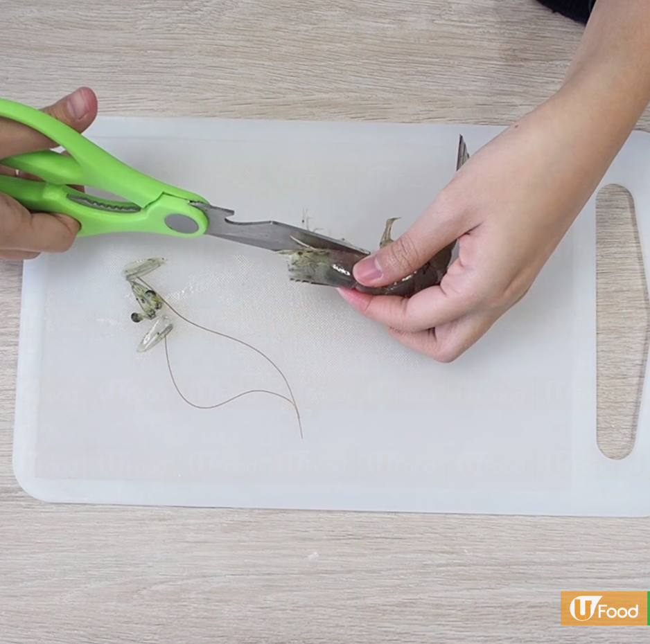 1. 清理蝦腳、蝦頭及去除蝦腸