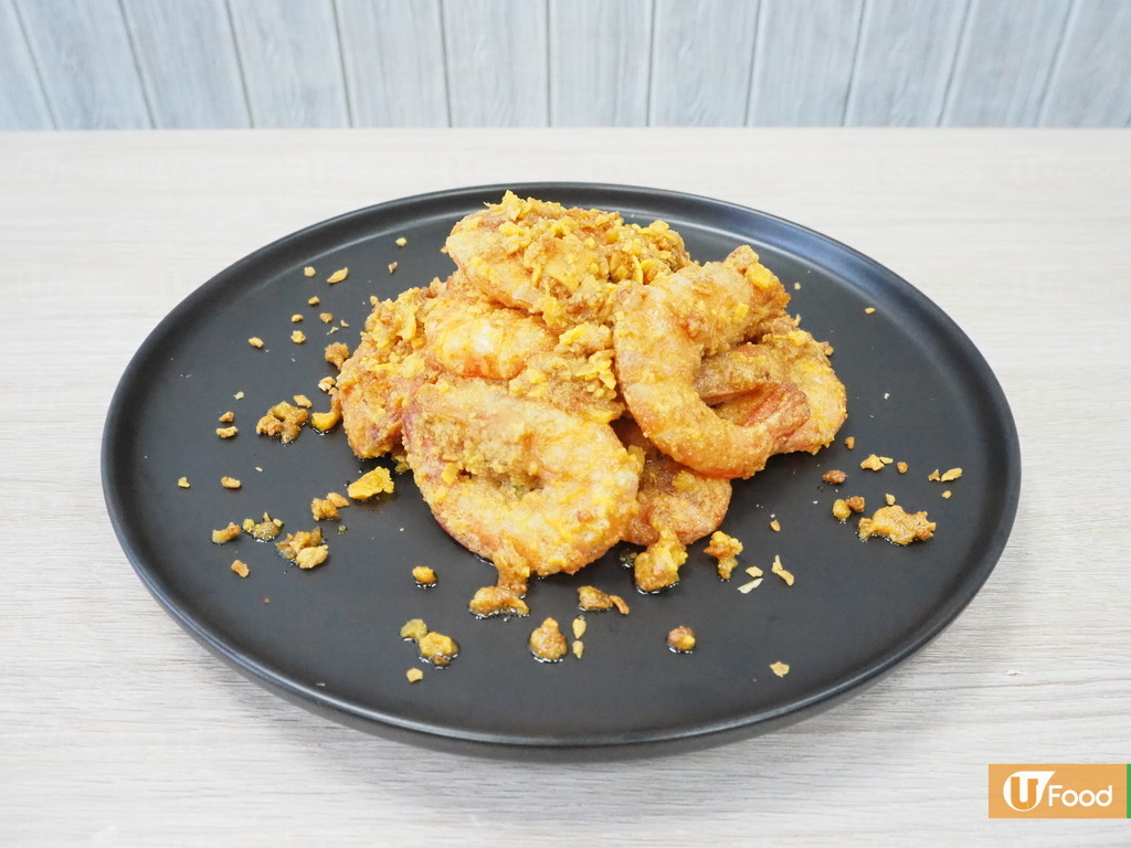 黃金蝦帶有陣陣的咸蛋黃味,加上新鮮大蝦,味道鹹香,令人忍不住食完一隻再接一隻,只需要4步簡單步驟就能煮出大排檔風味。