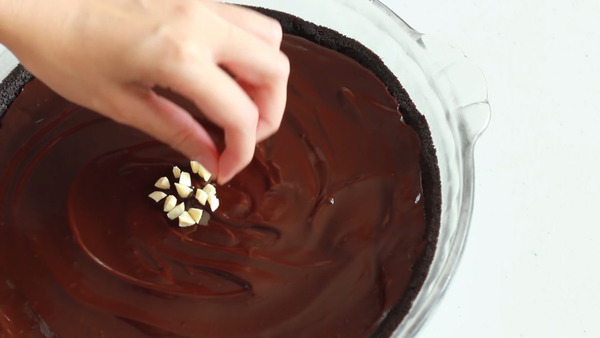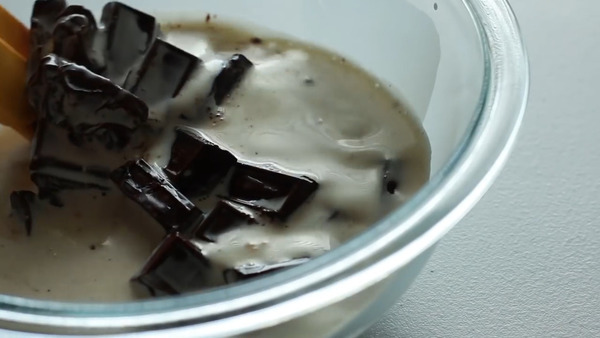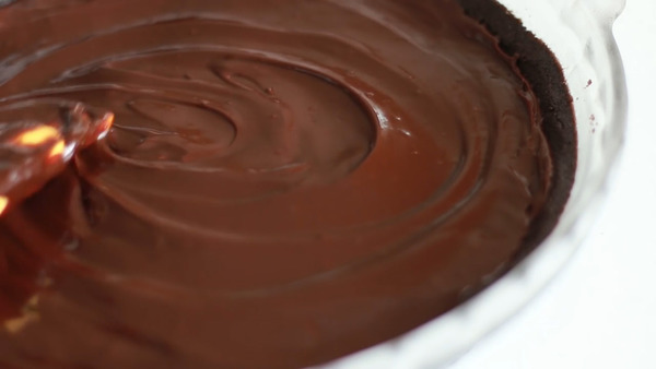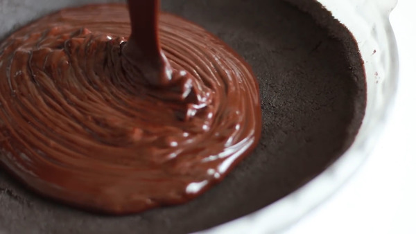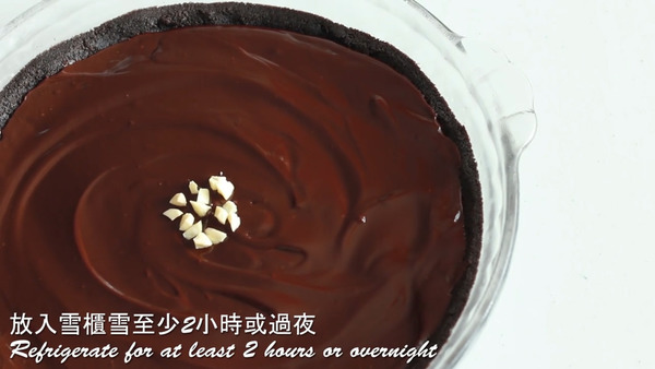 3. 將朱古力倒入模中,放入雪櫃冷藏大約2小時以上