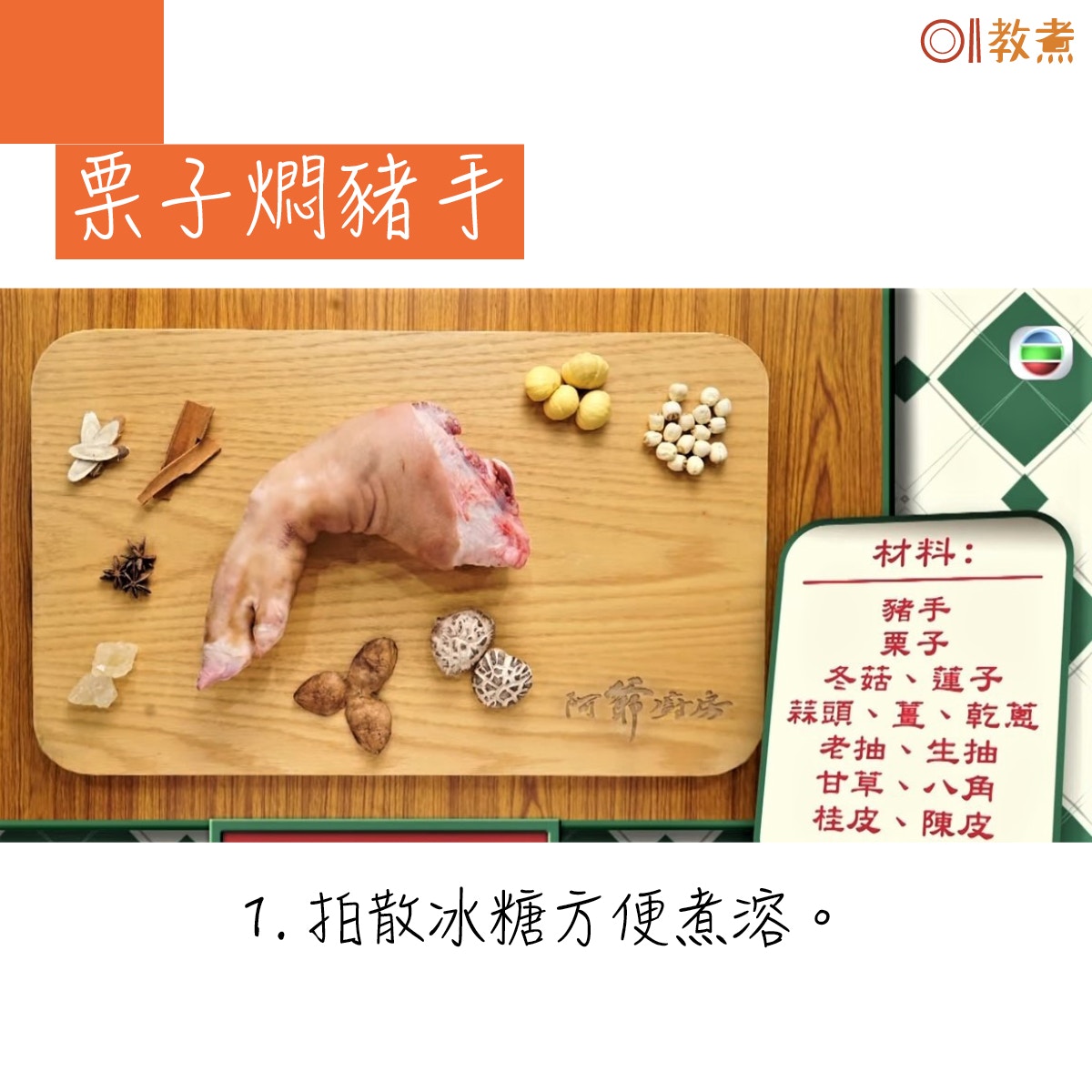 栗子燜豬手貼士。(阿爺廚房影片截圖)