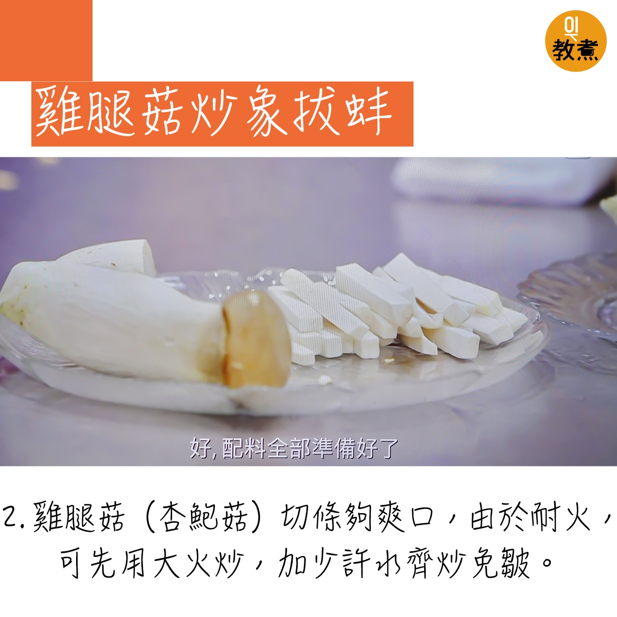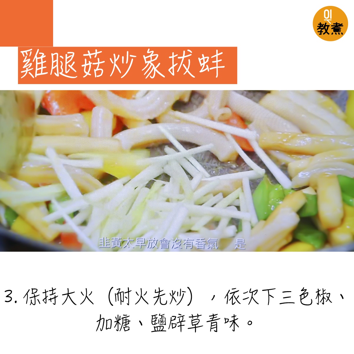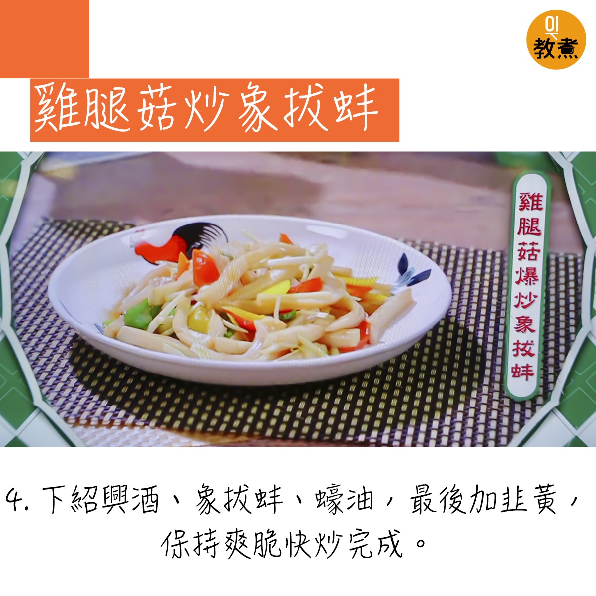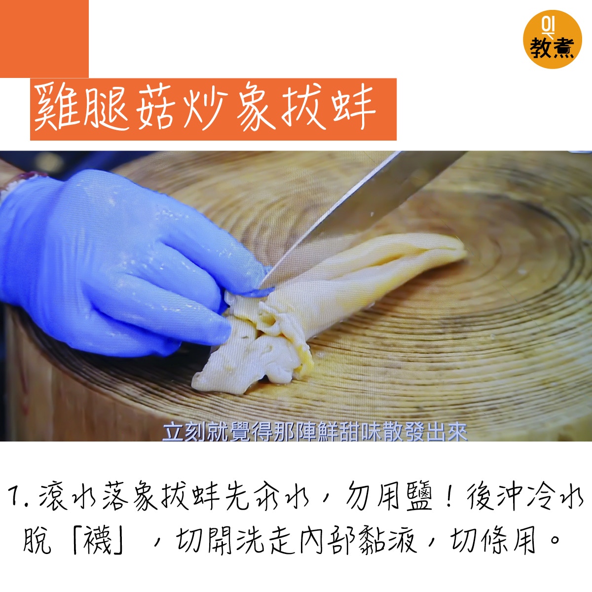 雞腿菇炒象拔蚌貼士。(阿爺廚房影片截圖)