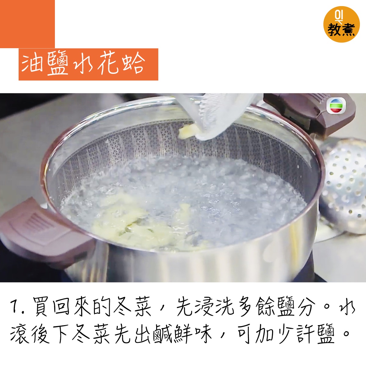 油鹽水花蛤貼士。(阿爺廚房影片截圖)