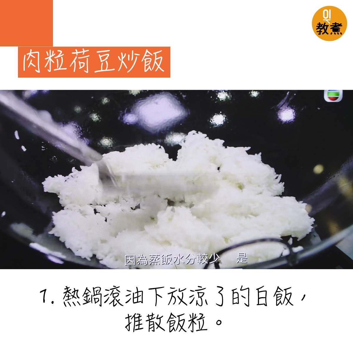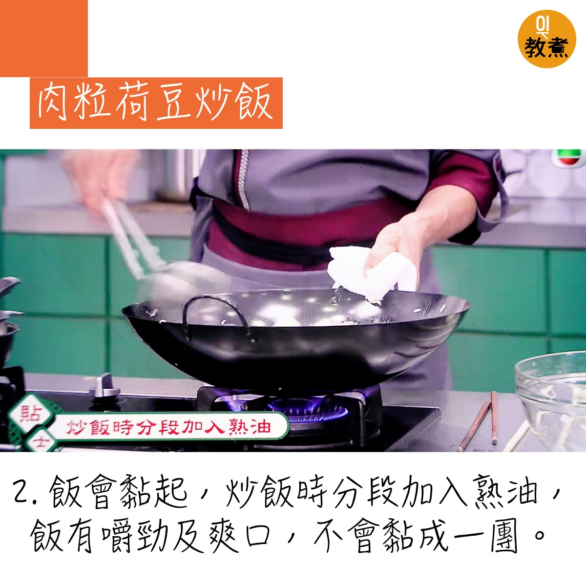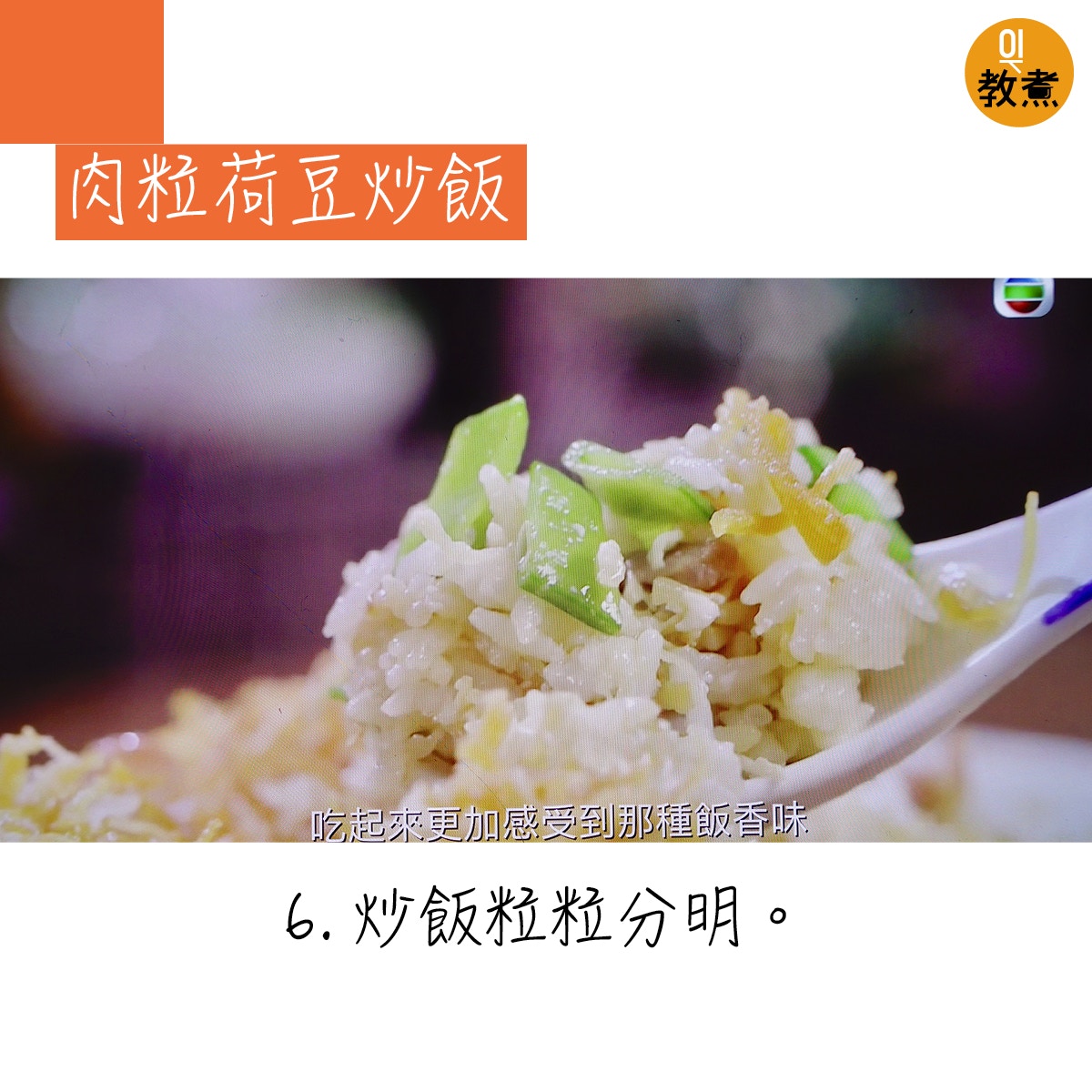 肉粒荷豆炒飯貼士。(阿爺廚房影片截圖)