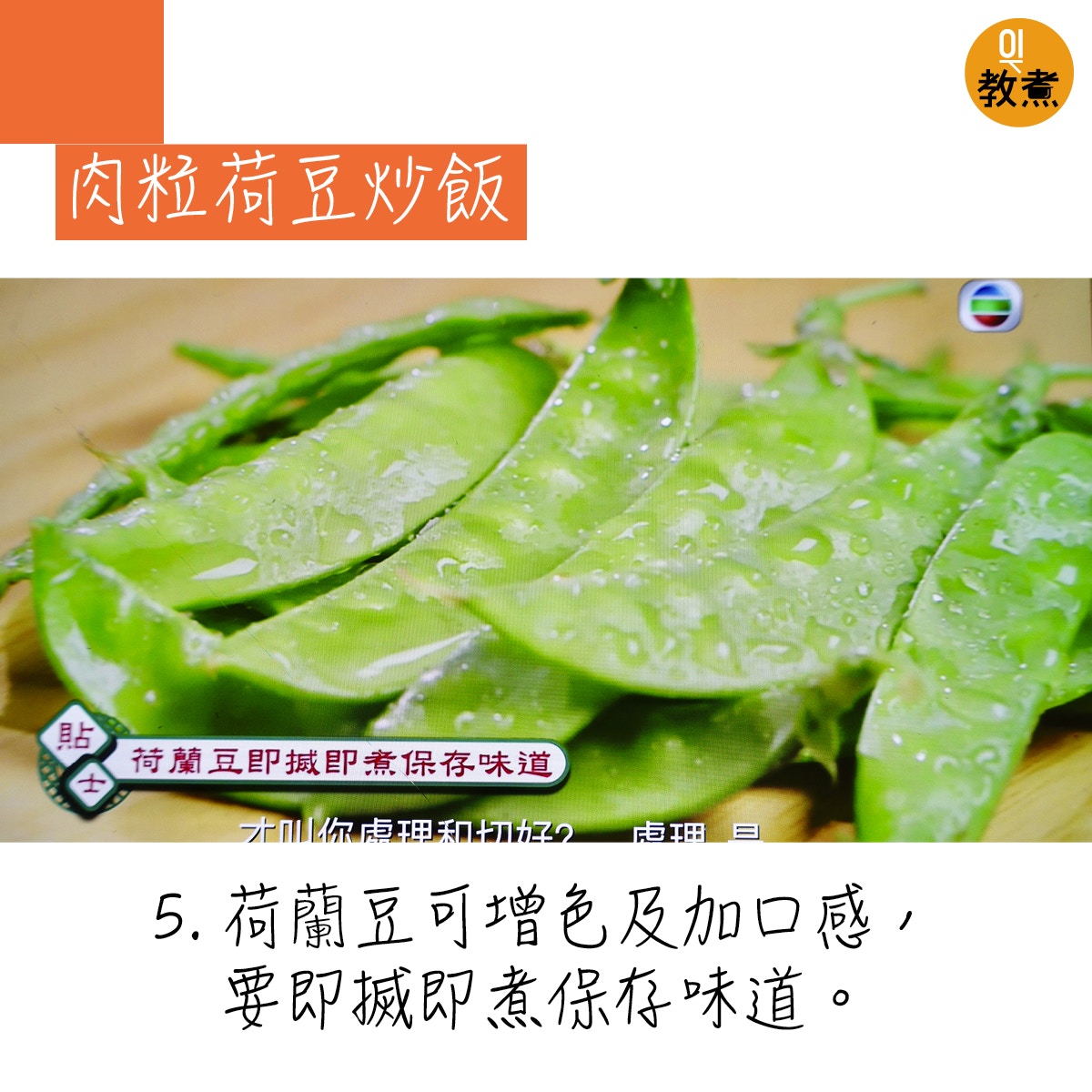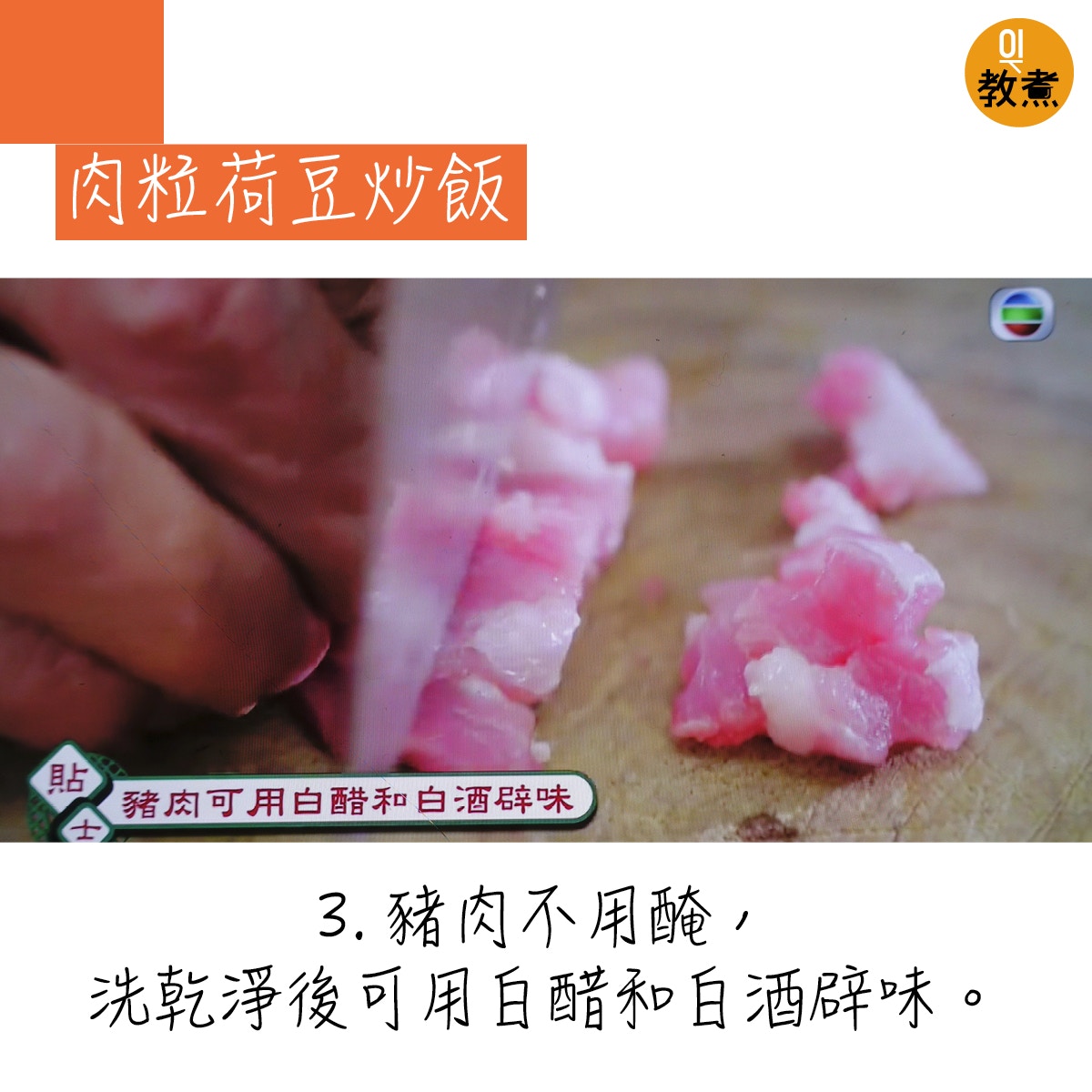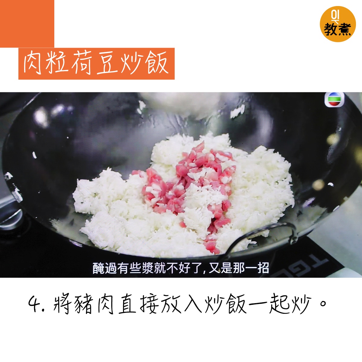 肉粒荷豆炒飯貼士。(阿爺廚房影片截圖)