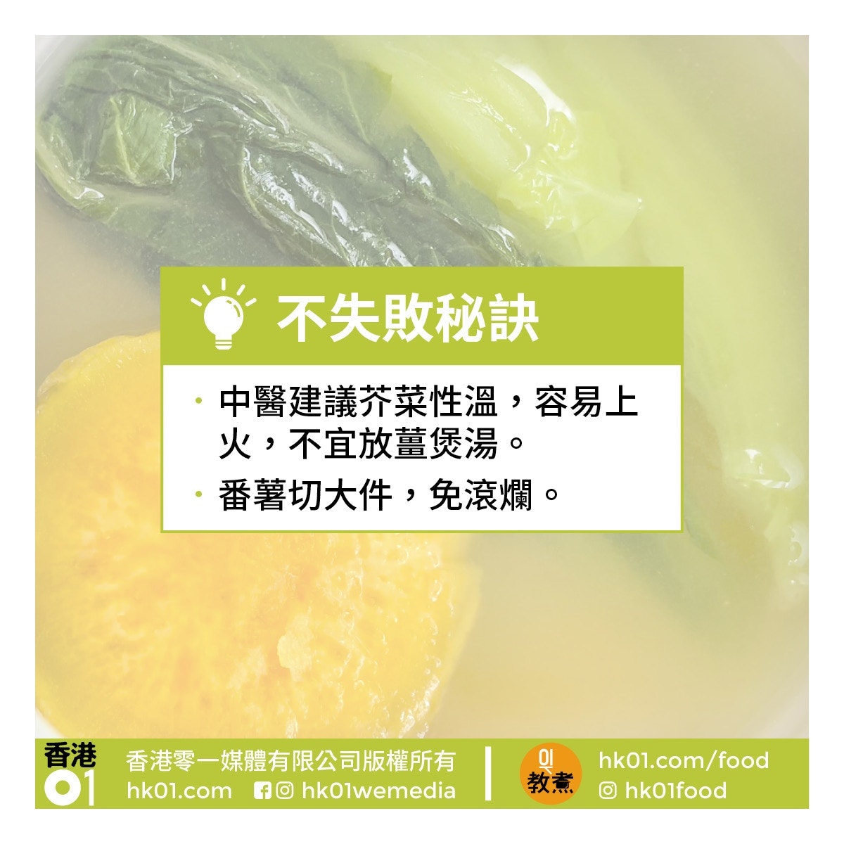 【健康湯水食譜】芥菜番薯湯不宜加薑 潤腸化寒痰非治感冒!