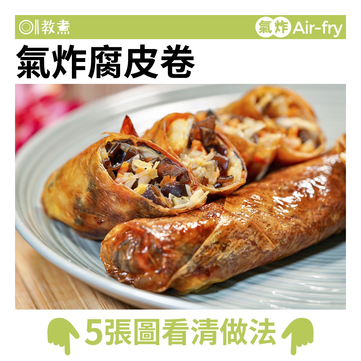 [食譜分享] 轉載 :【教煮 氣炸鍋食譜】氣炸腐皮卷餡料豐富 素鵝金黃脆皮不散6大秘訣 |