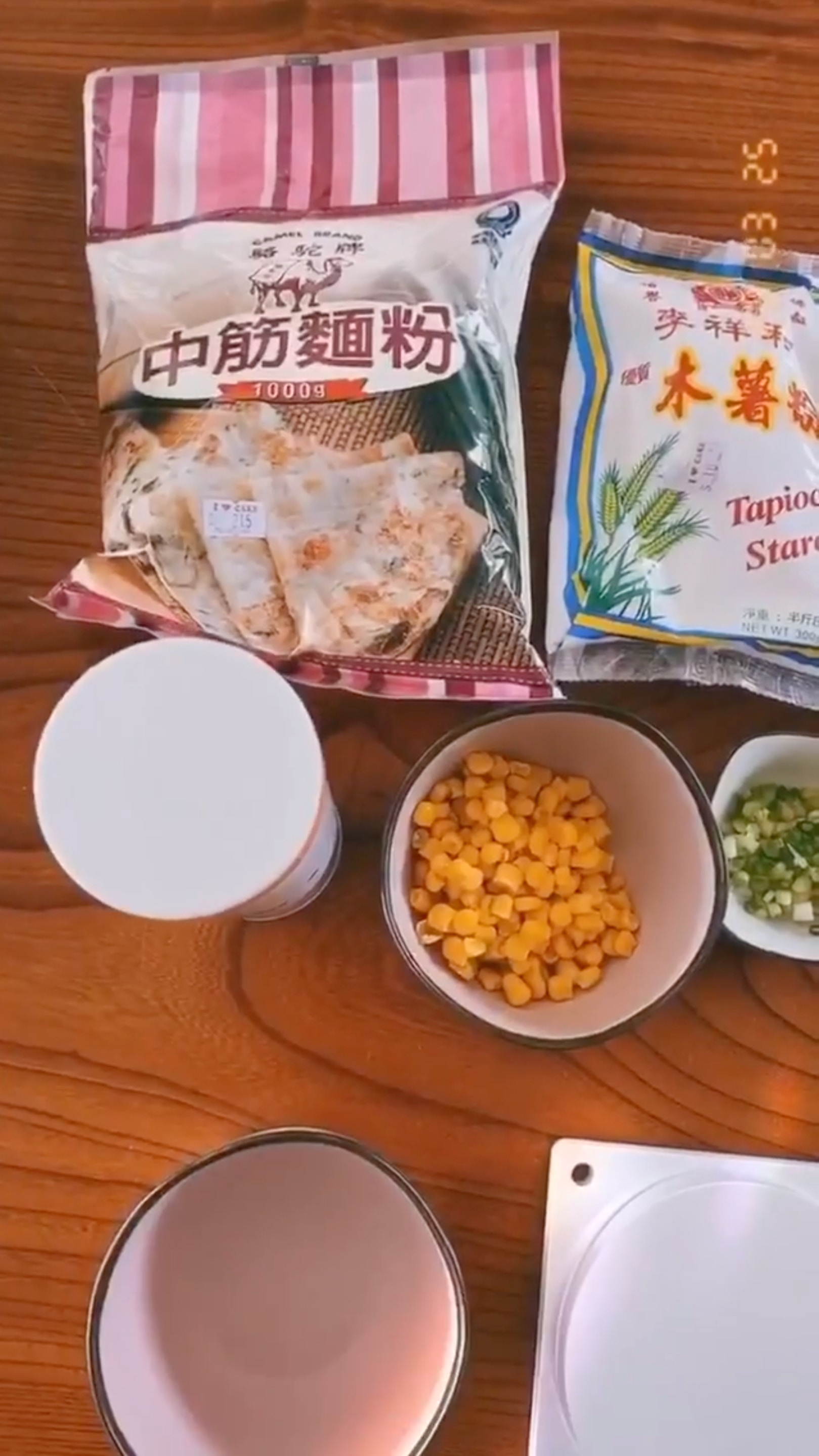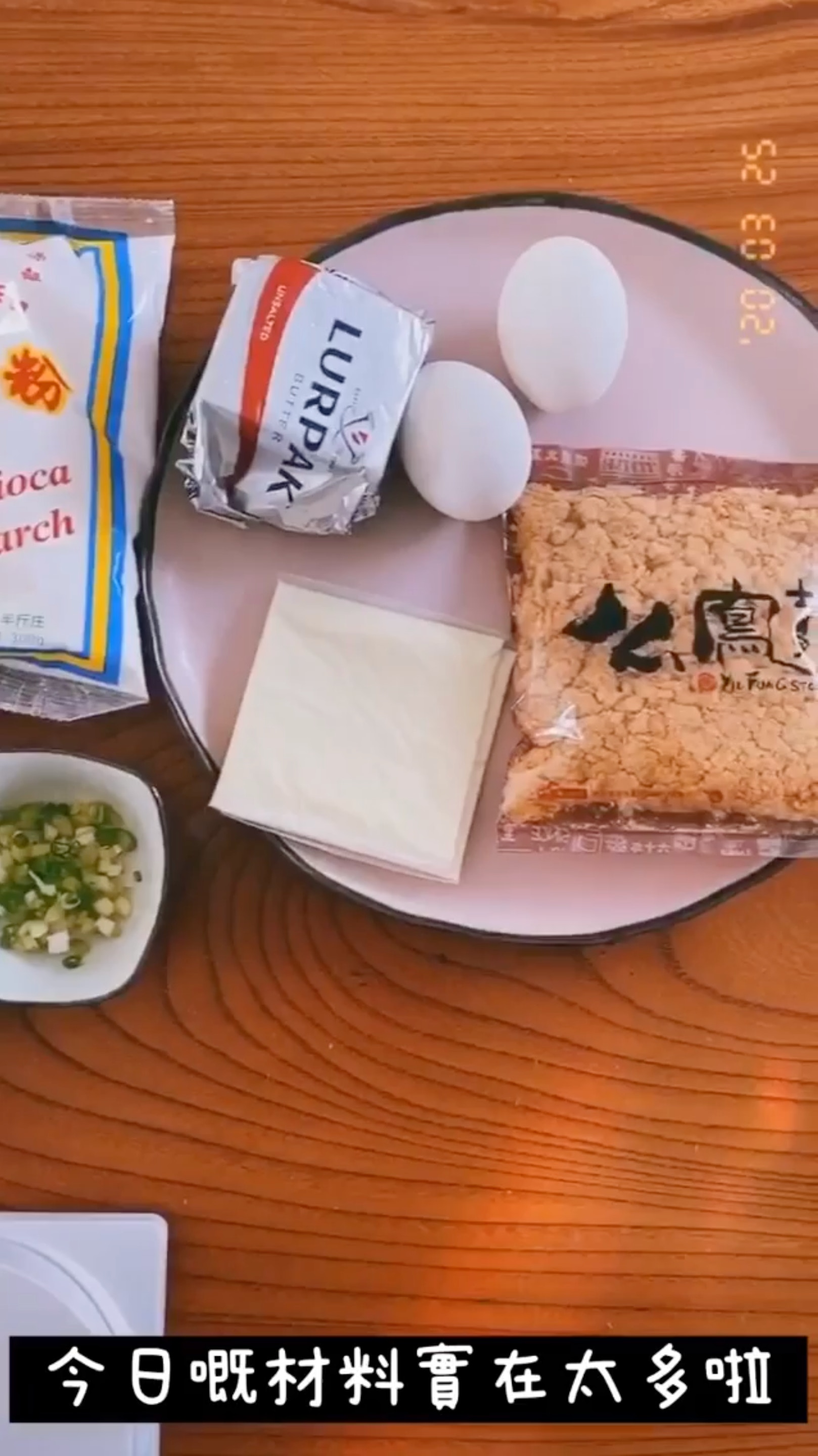 有別於以往7集,今次所需的材料最多,蛋皮需要中筋麵粉60克、木薯粉20克、蛋1隻、清水120毫升及香葱適量。(Instagram:yungchoyee)