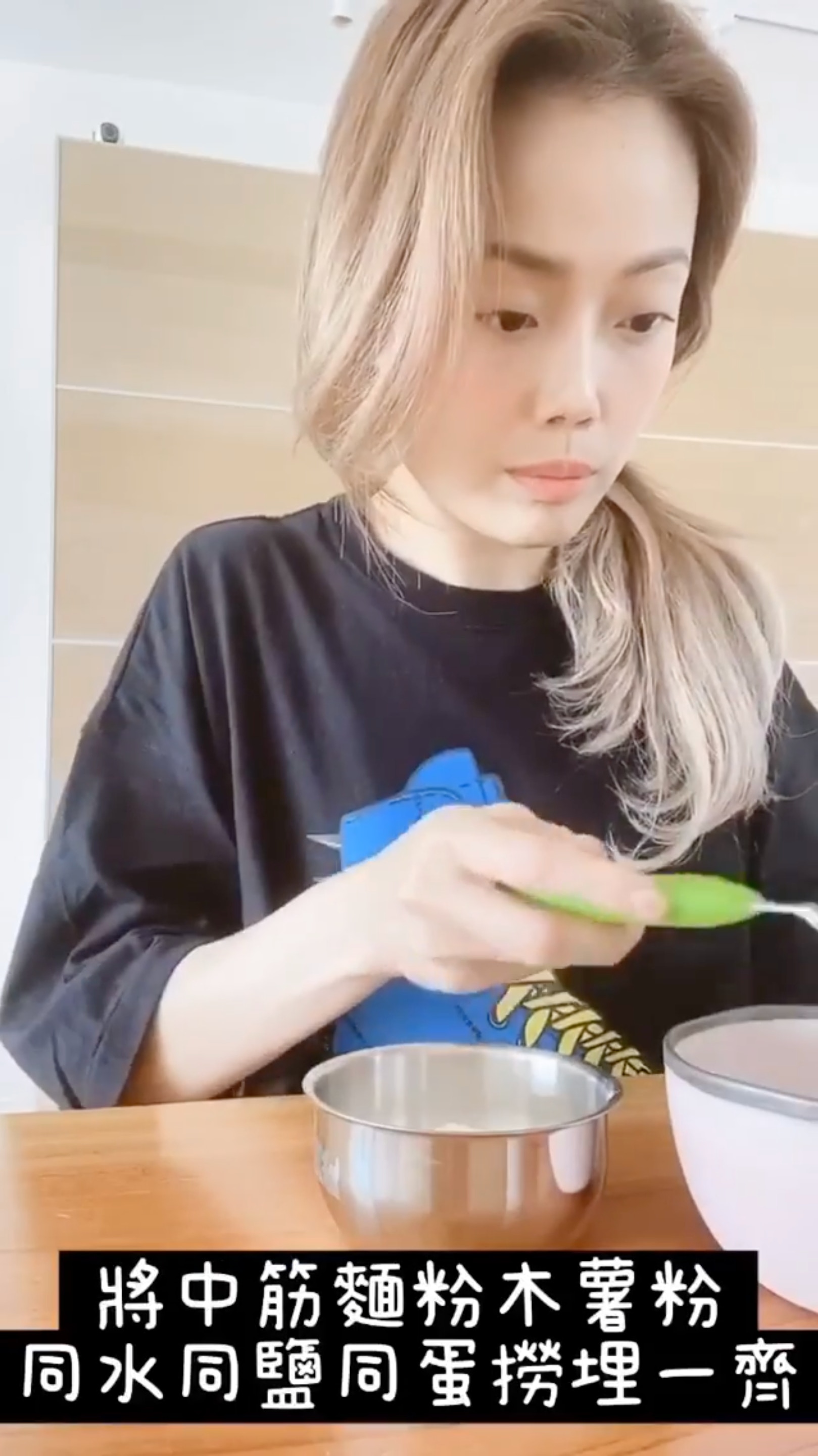 第一步是整蛋餅餅皮,見祖兒一臉認真。(Instagram:yungchoyee)