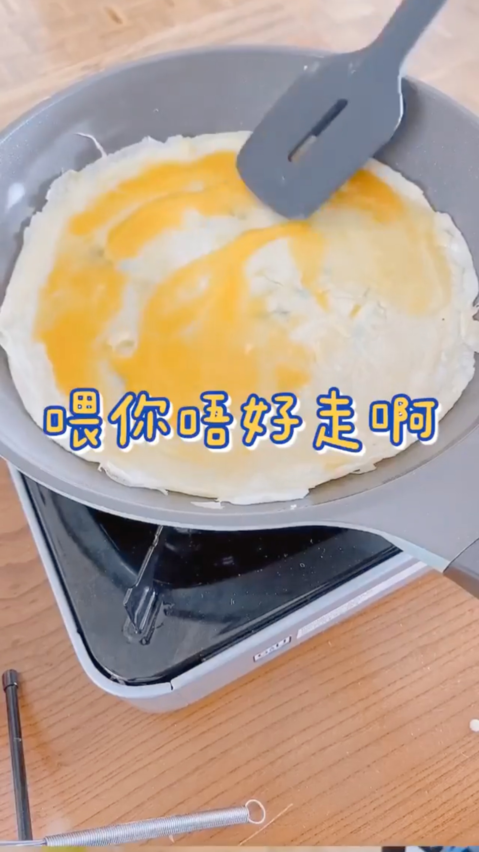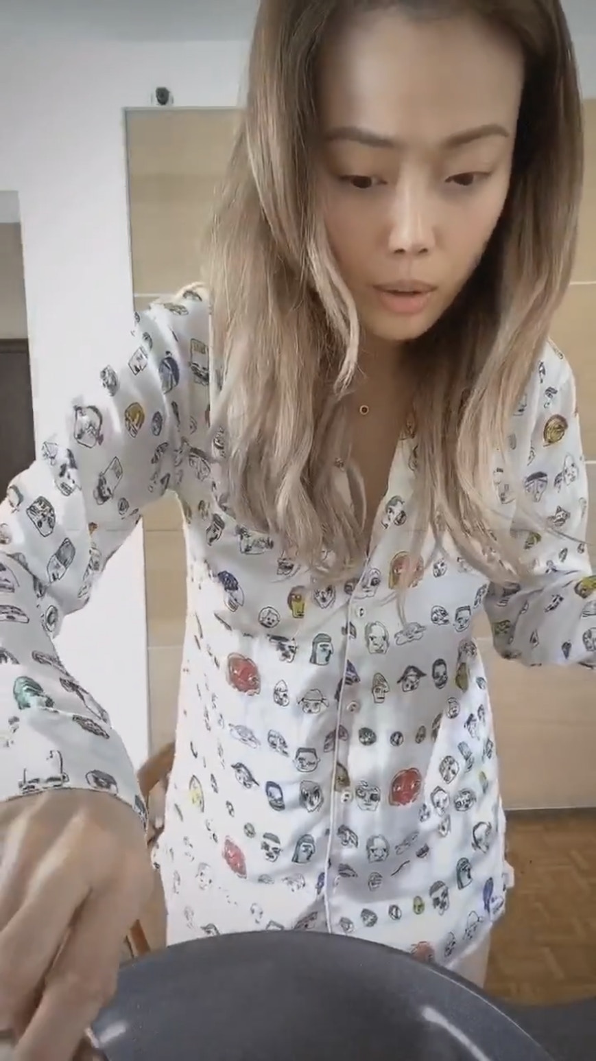 祖兒表示要煮自己最拿手的早餐——煎蛋!首先,當然要燒熱鑊、下油,再下蛋。(Instagram:yungchoyee)