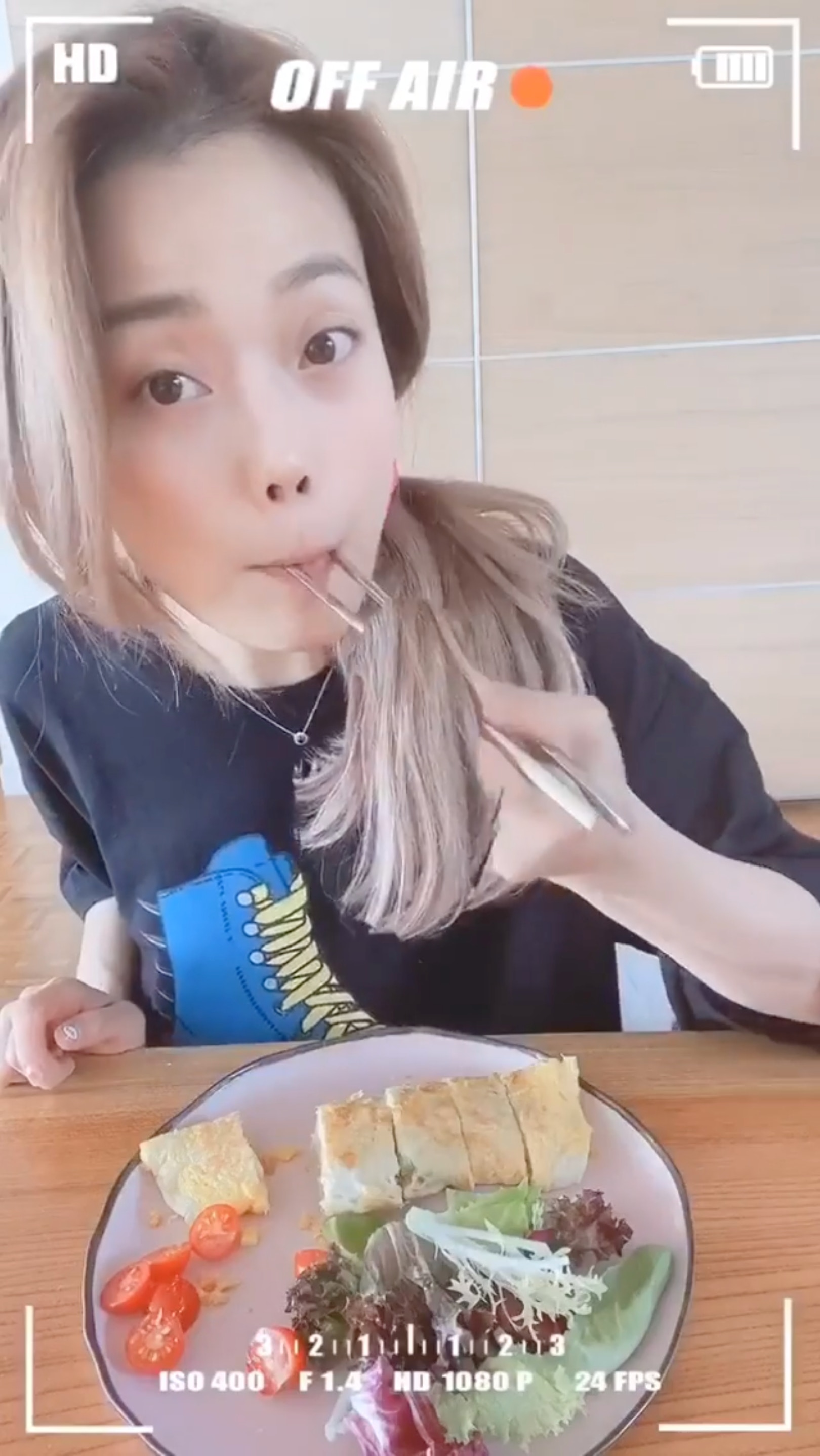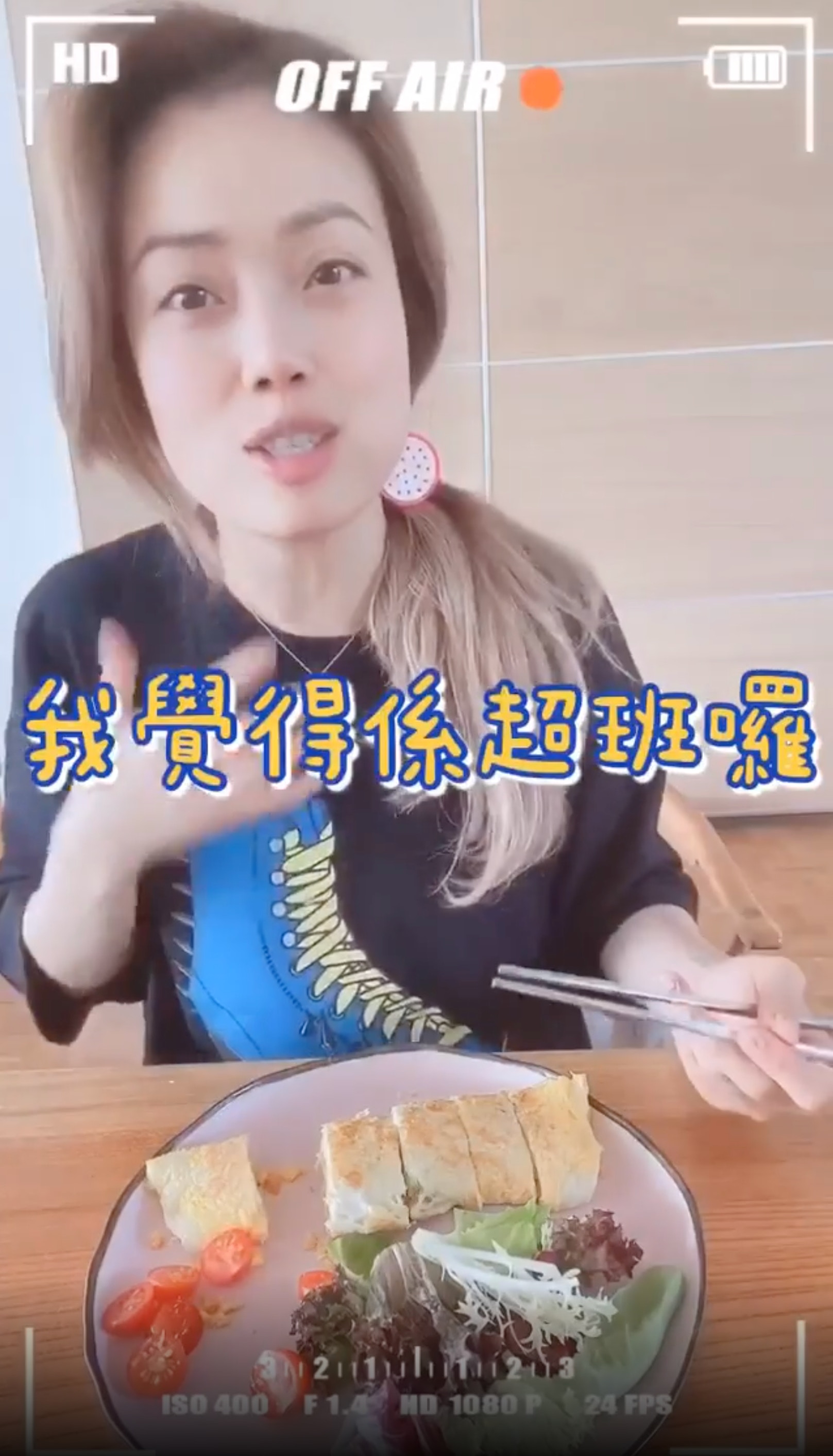 一向鐵人般的祖兒的確厲害,肩傷稍作休息後,隔了一天又堅持煮早餐,她說要示範煮自己最拿手的早餐,毫無懸念,又是蛋!雖然祖兒今年即將步入40歲,但依然童心未泯,煎出來的蛋也可愛過人。大家有沒有發現,連她的髮夾都是煎蛋?肯定有襯過!