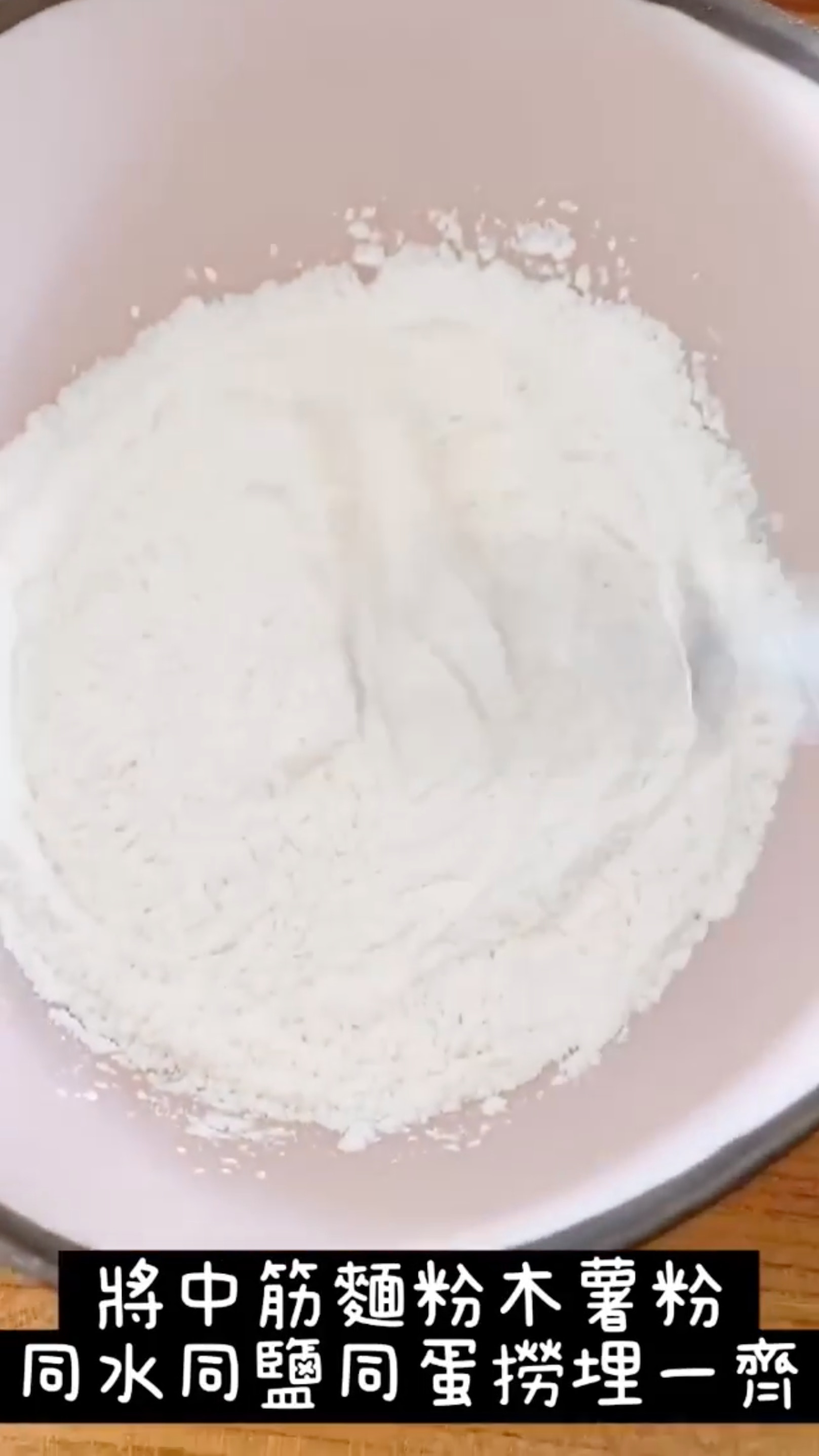 先把中筋麵粉和木薯粉混和。(Instagram:yungchoyee)