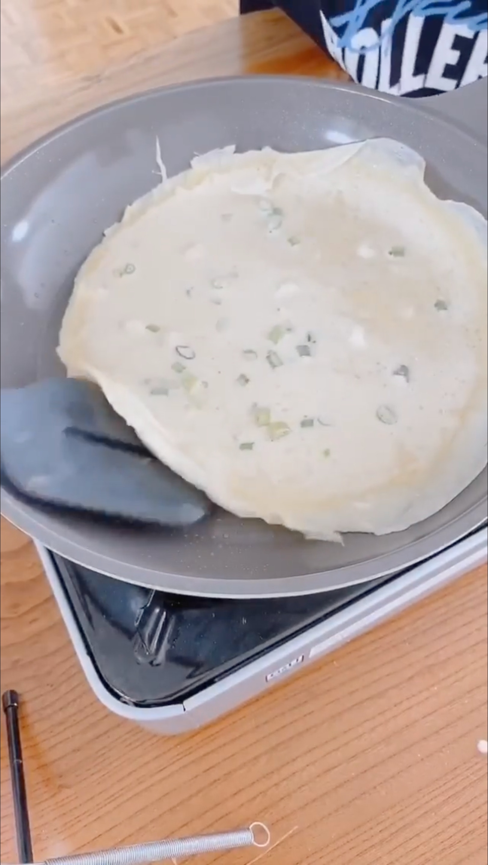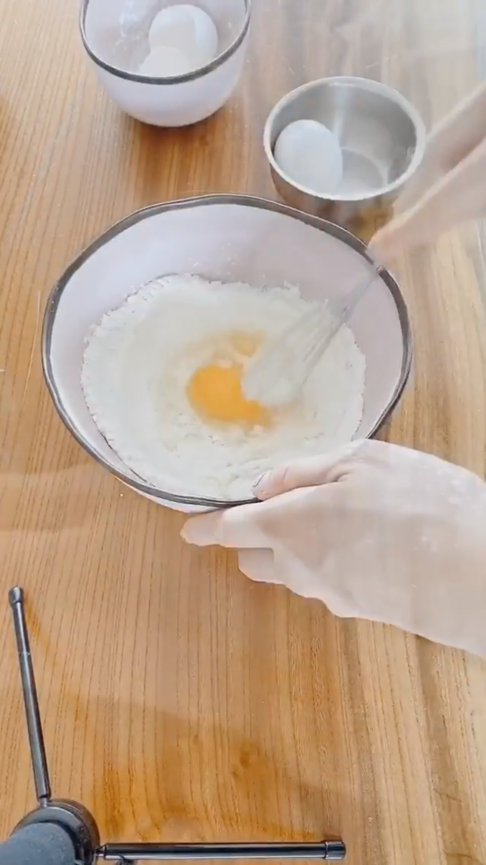 在麵粉中再加雞蛋、水和鹽,還有香葱,徹底攪勻。(Instagram:yungchoyee)