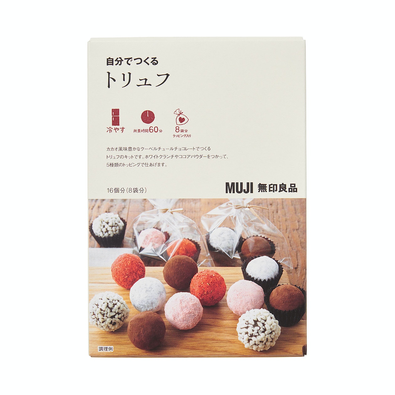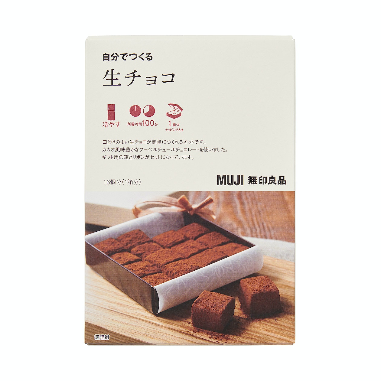 生朱古力是日本著名手信,原來製法簡單,1個分量已經整到16粒,只需冷藏便可。(無印良品)