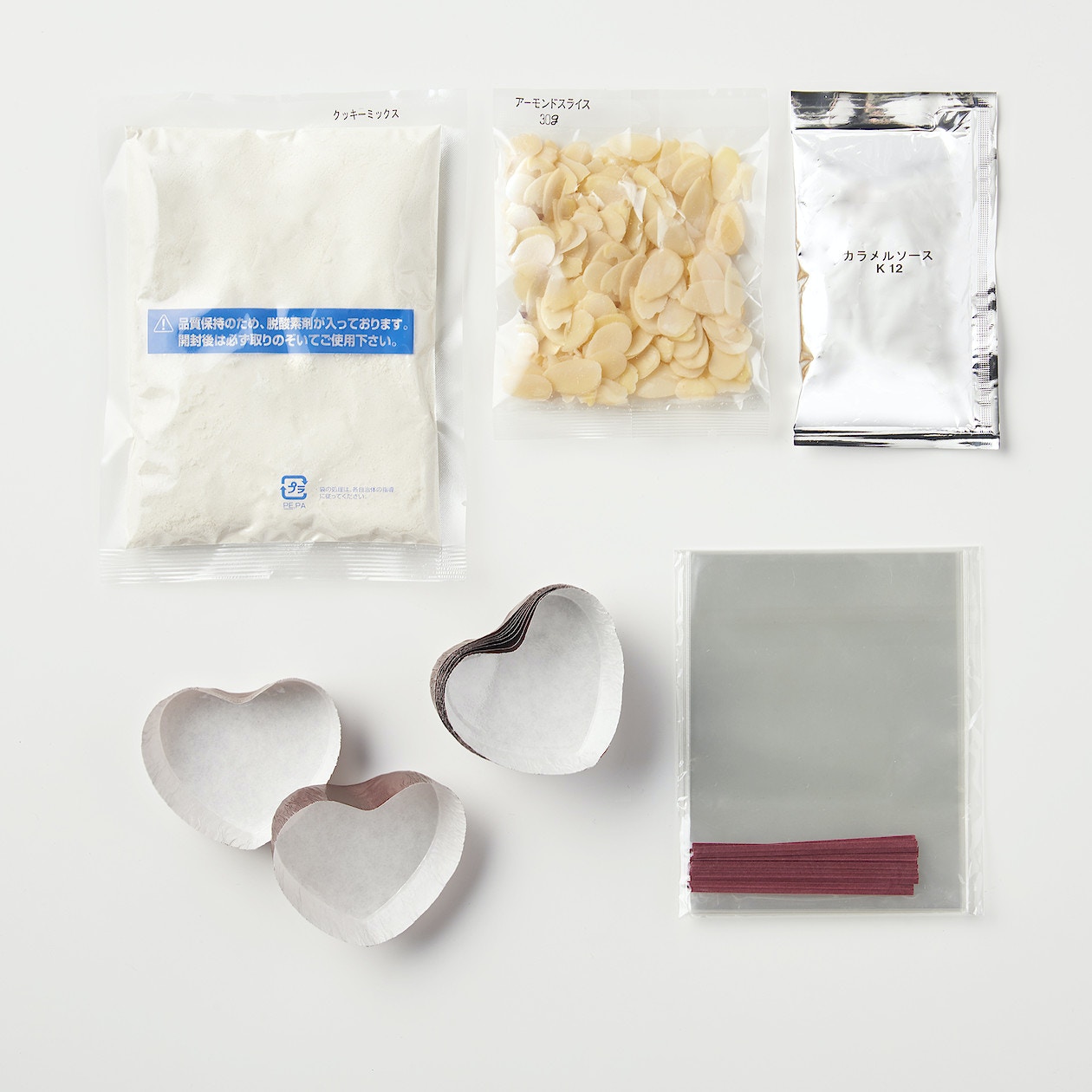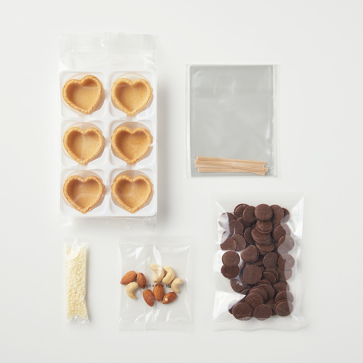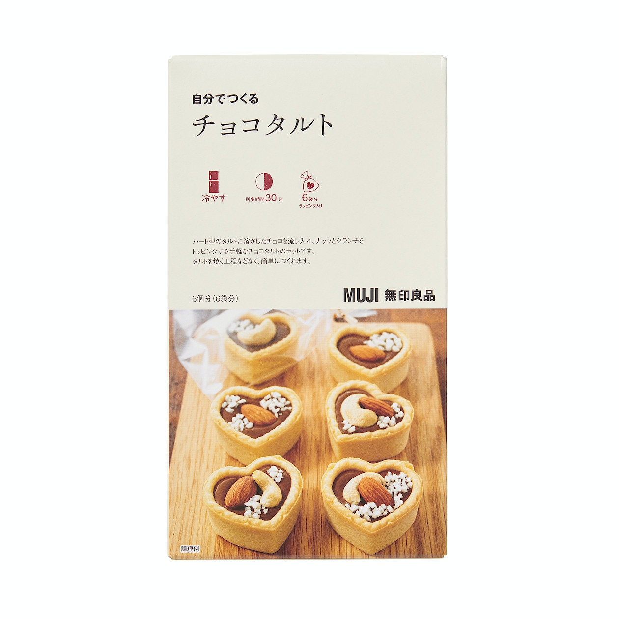 包裝內已有6個心形撻模,還有朱古力粒、果仁、腰果等。(無印良品)