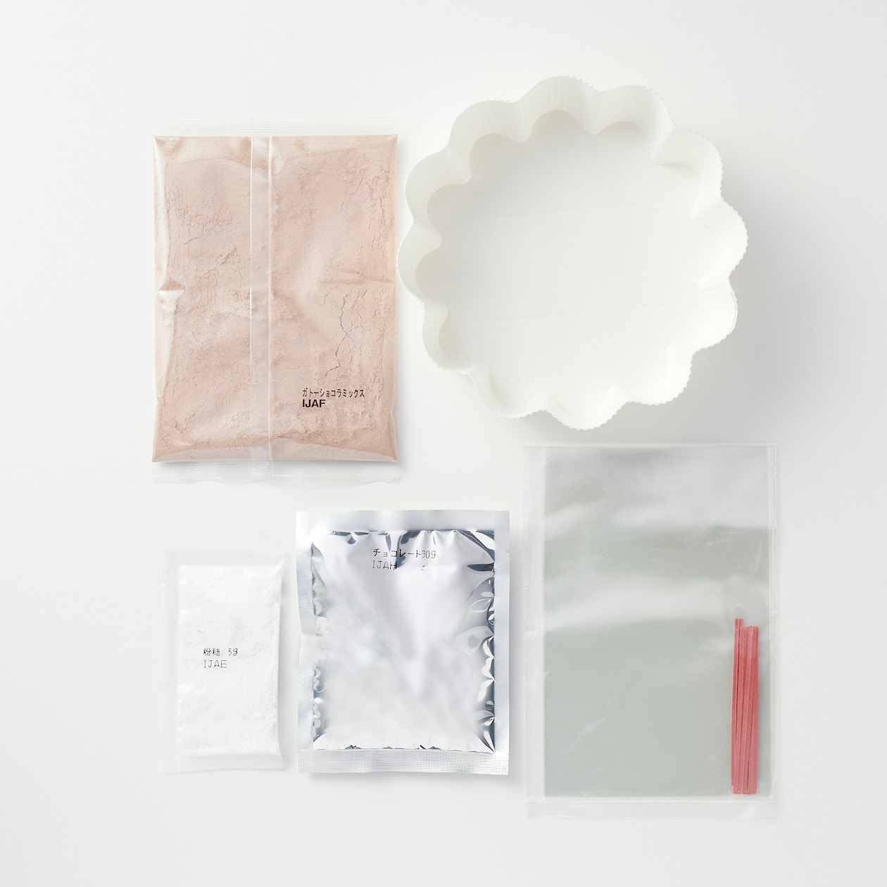 材料包有朱古力蛋糕粉、朱古力等,你自備蛋、牛油和奶,灑上糖粉即成。(無印良品)