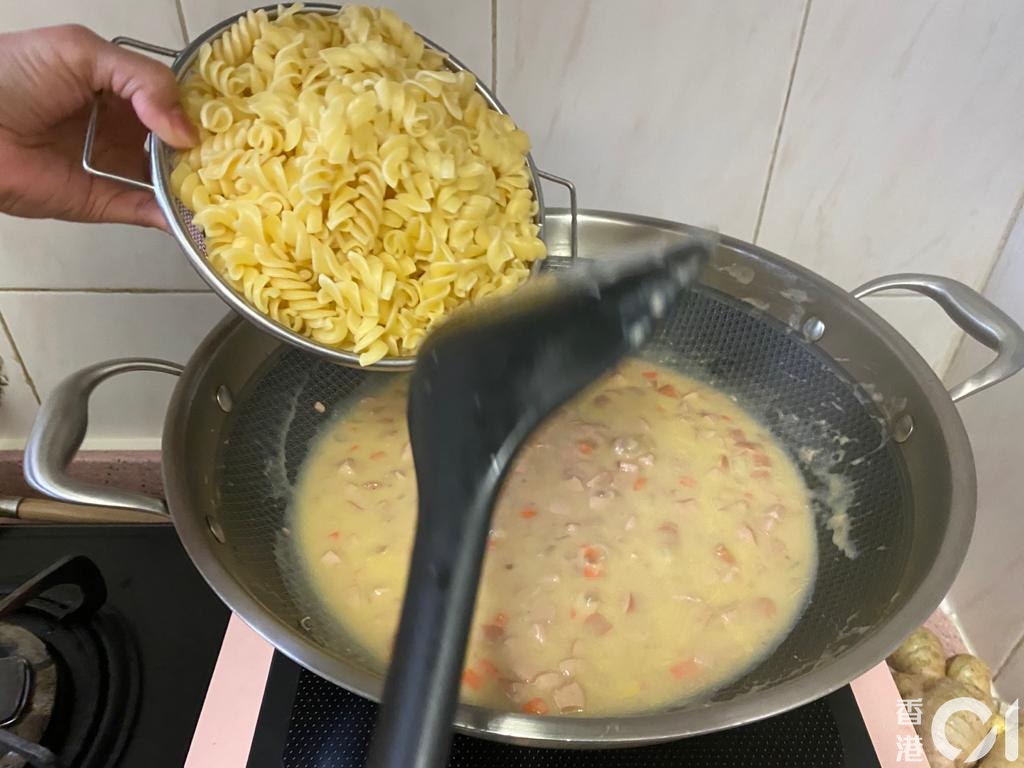 這個又是小朋友很喜歡的茶餐,但如果平時在外面食會覺得螺絲粉太多,肉類與蔬菜不夠,在家自製就可以加入充足的份量,亦因為兒子不喜歡吃紅蘿蔔,所以我就趁機將紅蘿蔔切成碎粒,混入白汁吞拿魚中,讓他不知不覺吃了很多紅蘿蔔。