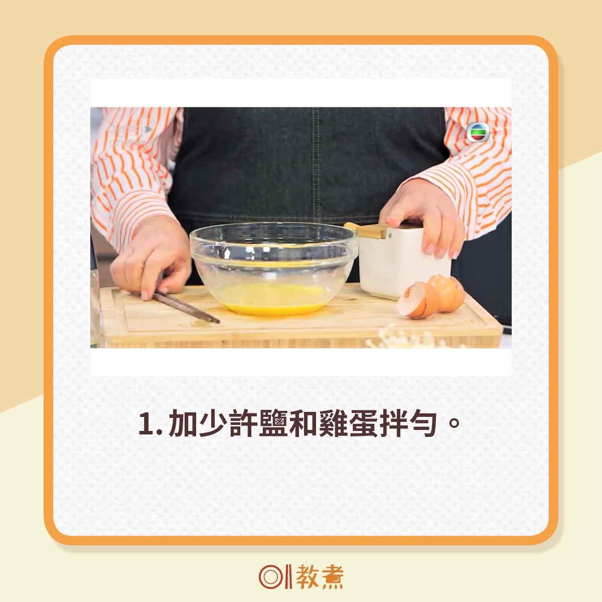 1. 雞蛋放大碗內,加少許鹽,拂勻備用