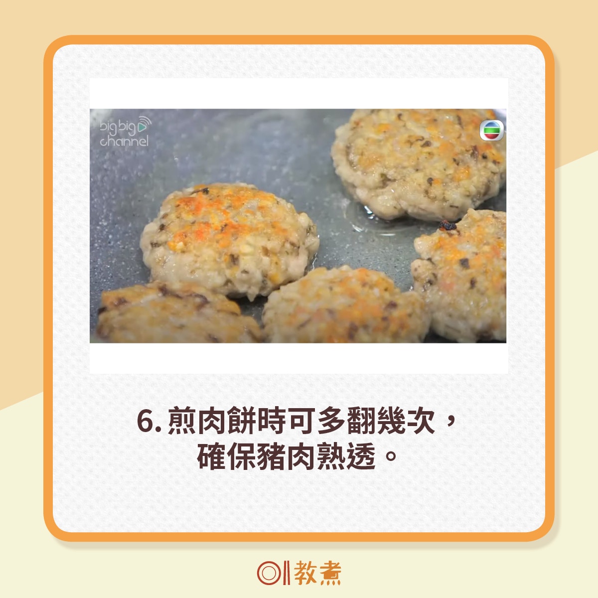 3.豬絞肉搓成小肉餅,熱鑊下油,以中小火把肉餅煎至兩面金黃,上碟即成