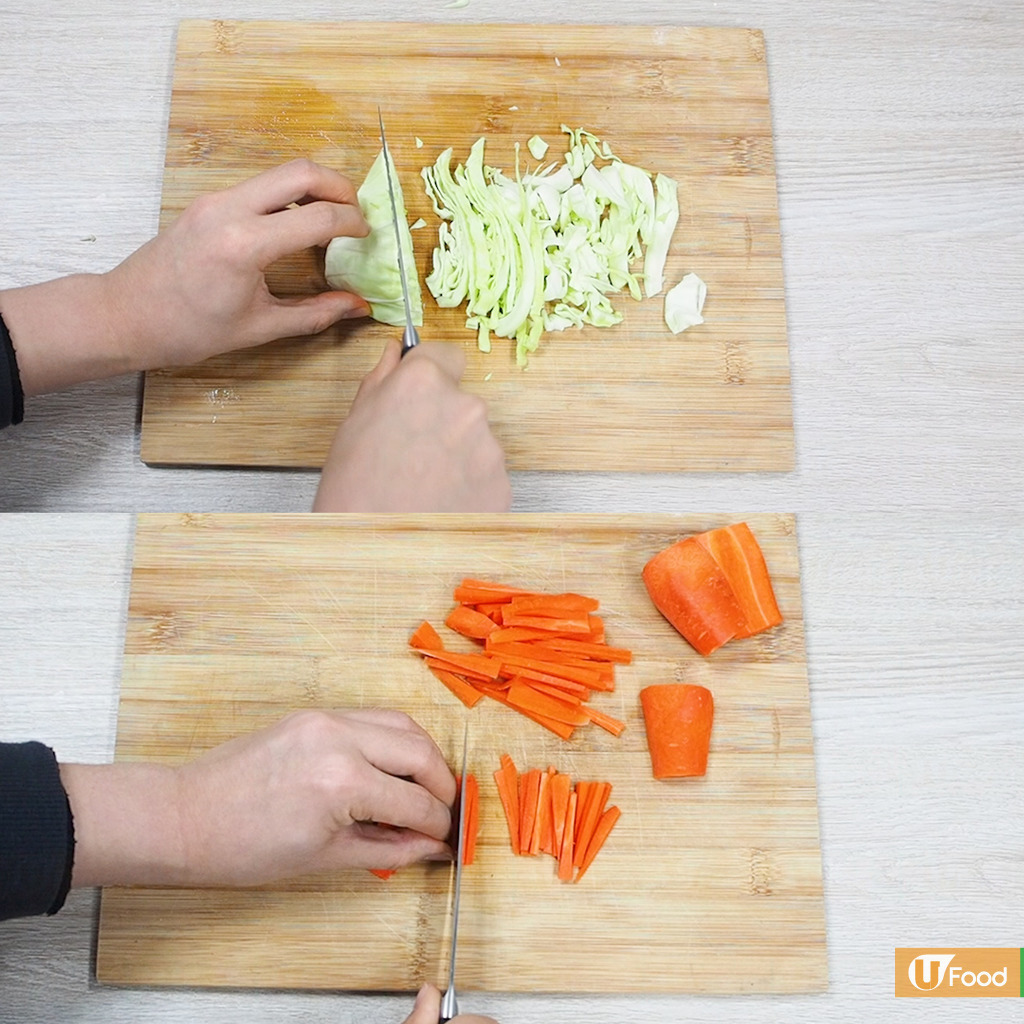 1. 紅蘿蔔和椰菜洗淨後切絲備用