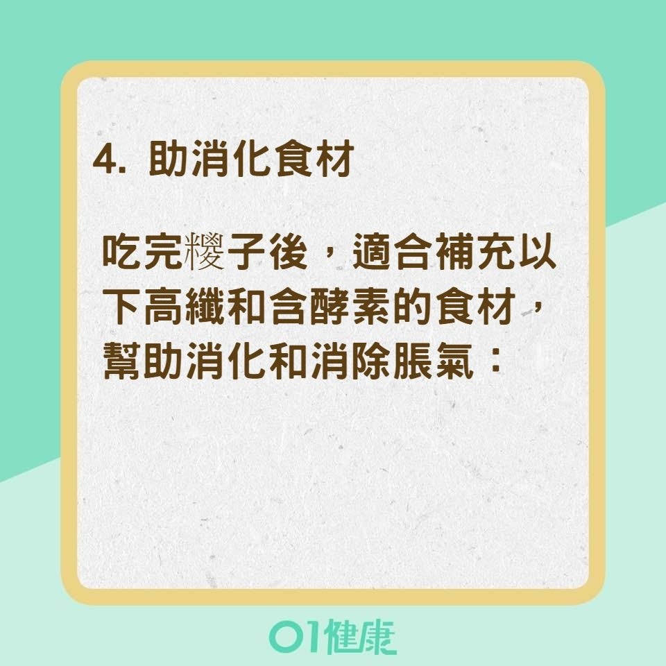 吃完糭子後,適合補充以下高纖和含酵素的食材,幫助消化和消除脹氣: