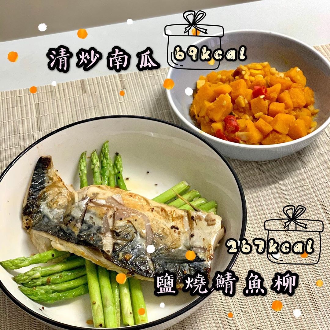 鹽燒鯖魚柳配清炒南瓜(308kcal)⁣(willa.wwl@instagram)