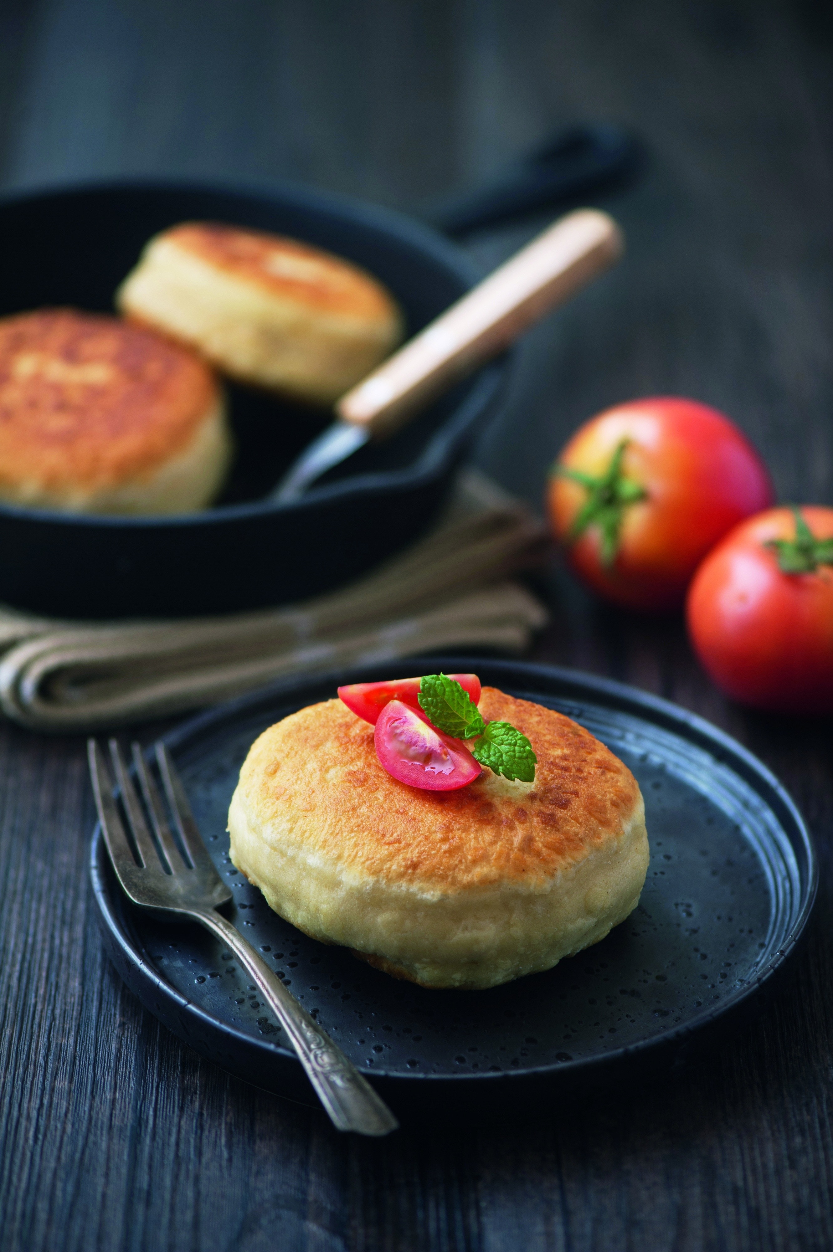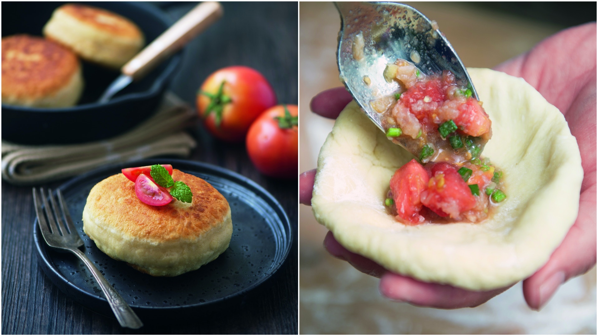 鮮香的魚肉餡放入番茄塊,連湯帶汁一同包入麵皮中,烙至兩面金黃,一口咬下滿滿湯汁,香爆了。