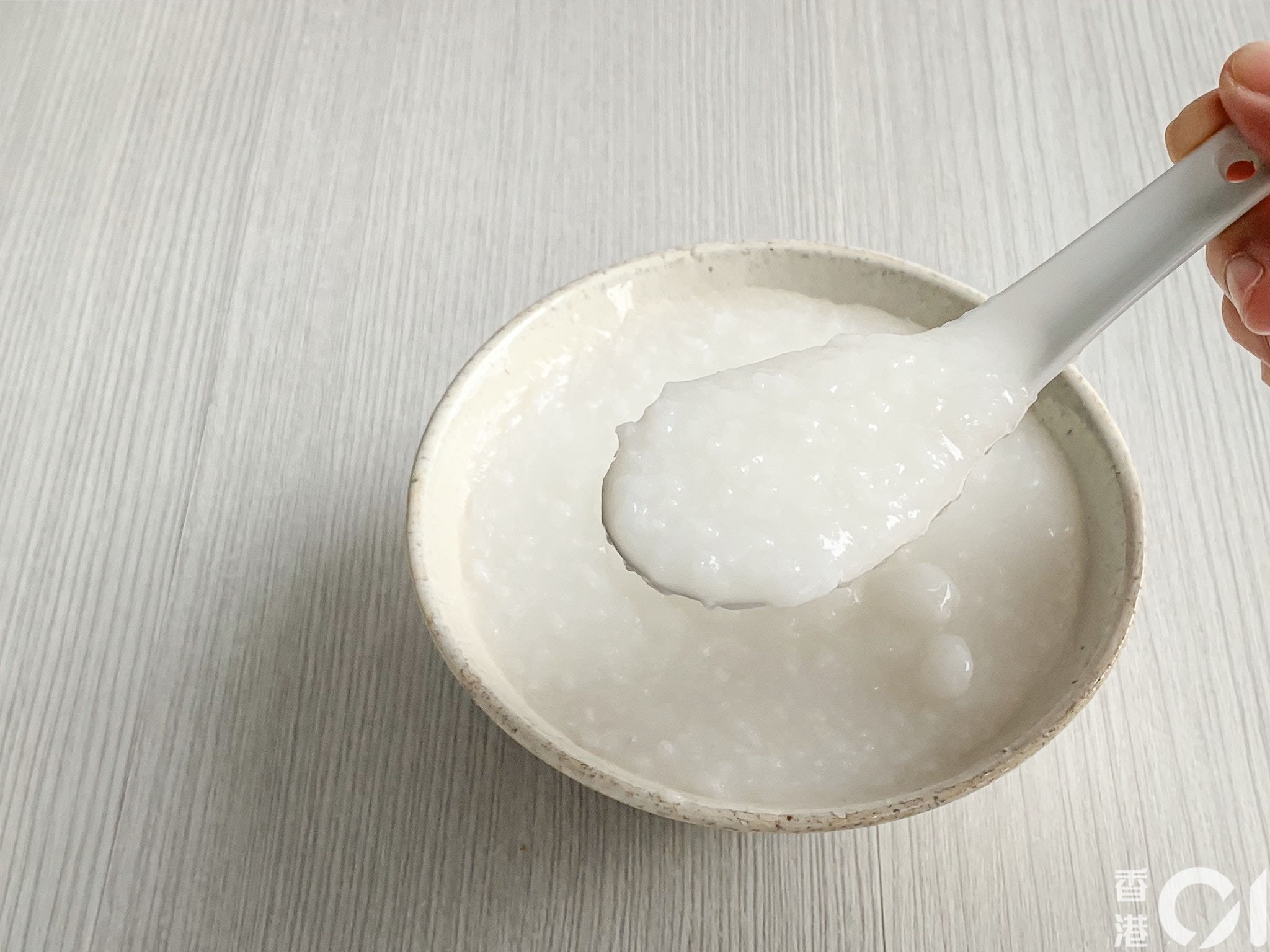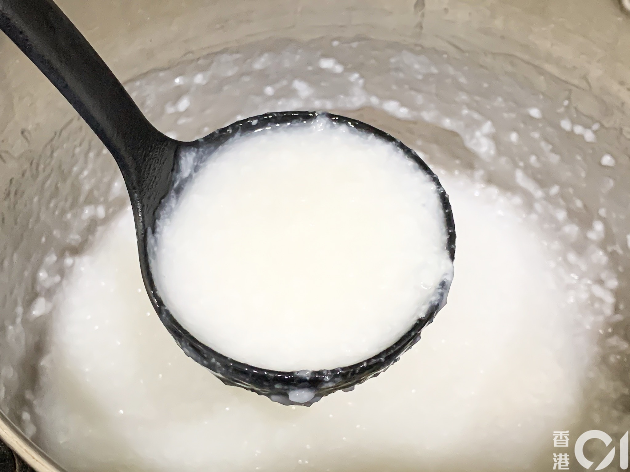 此方法煮粥沒有「糊底」,共花了50分鐘,有綿滑白粥。(尹嘉蔚攝)