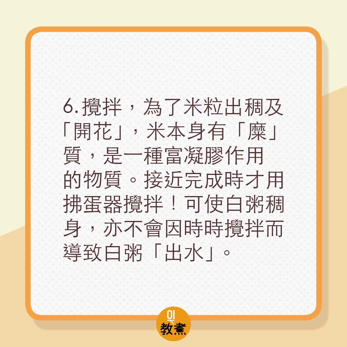以下是6項煮粥貼士總結以供參考︰