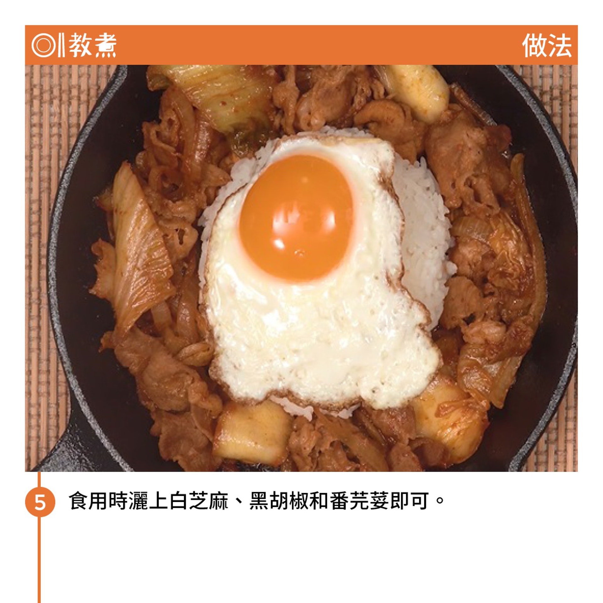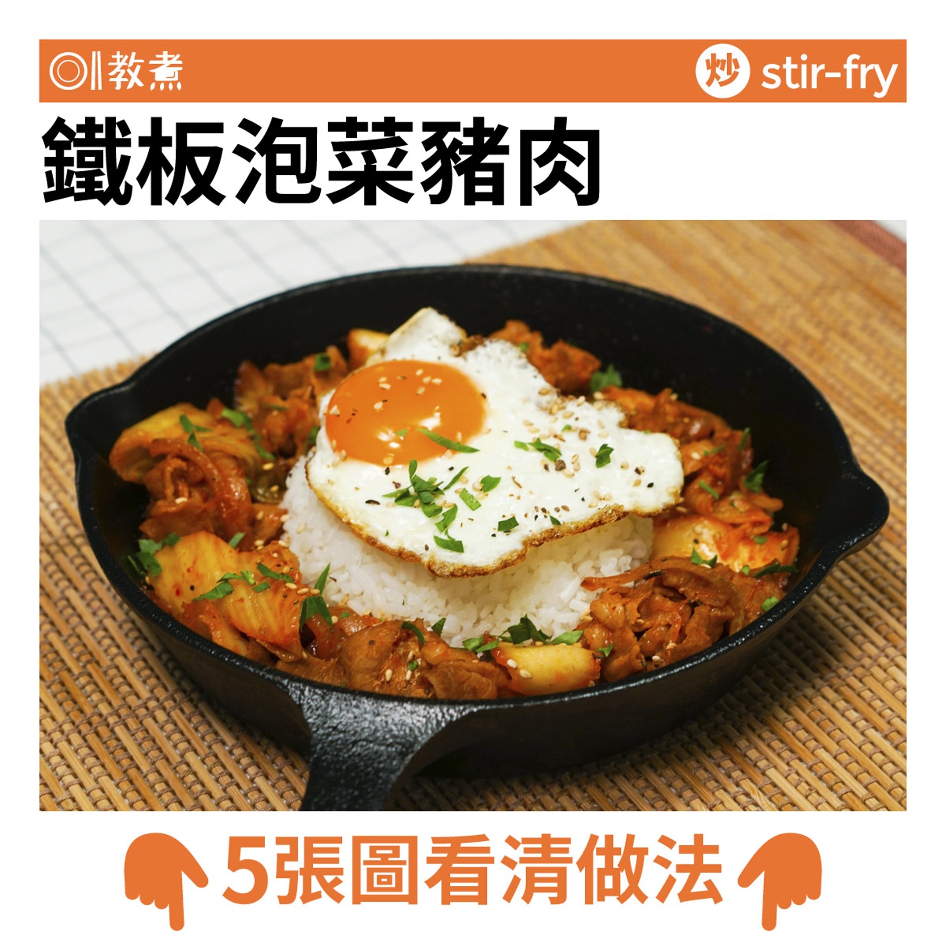 【韓式泡菜豬肉飯】鐵板一鍋到底 加太陽蛋快炒粒粒金黃焦香