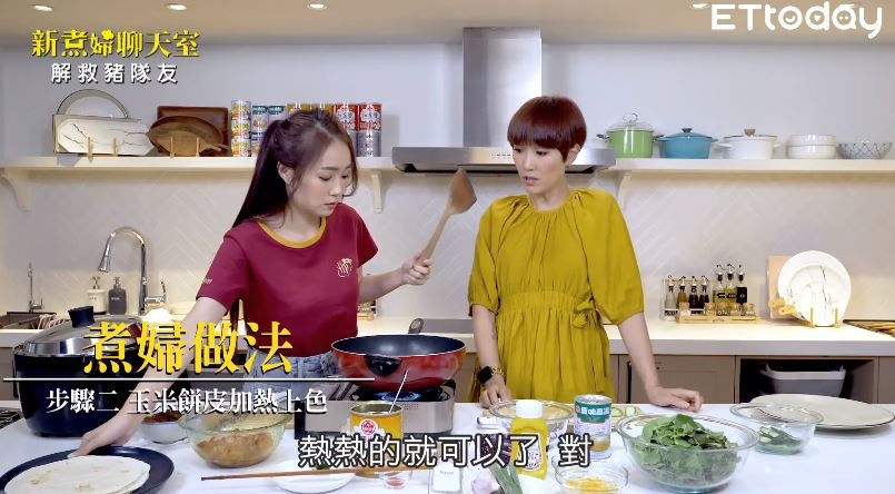 等待蒸蛋約12分的過程中,詹子晴不只完成咖哩肉末,還可以把握時間再進行下一道料理「咖哩雞肉玉米餅」。(Youtube@播吧 影片截圖)