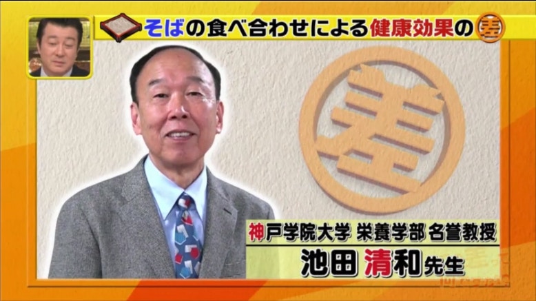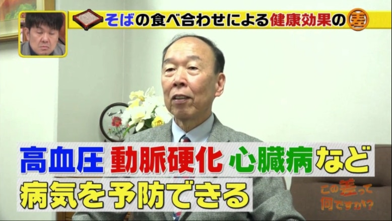 神戶學院大學營養學系名譽教授池田清和指進食蕎麥麵可預防高血壓、動脈硬化及心臟病,是一種為身體帶來益處的食物。(日本電視台TBS節目《この差って何ですか?》電視截圖)