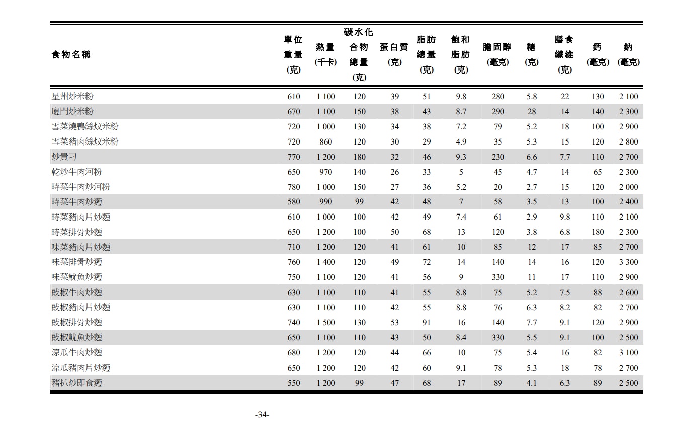 資料來源:食環署「本地粥粉麵飯營養含量」報告表中的「炒粉麵」類。