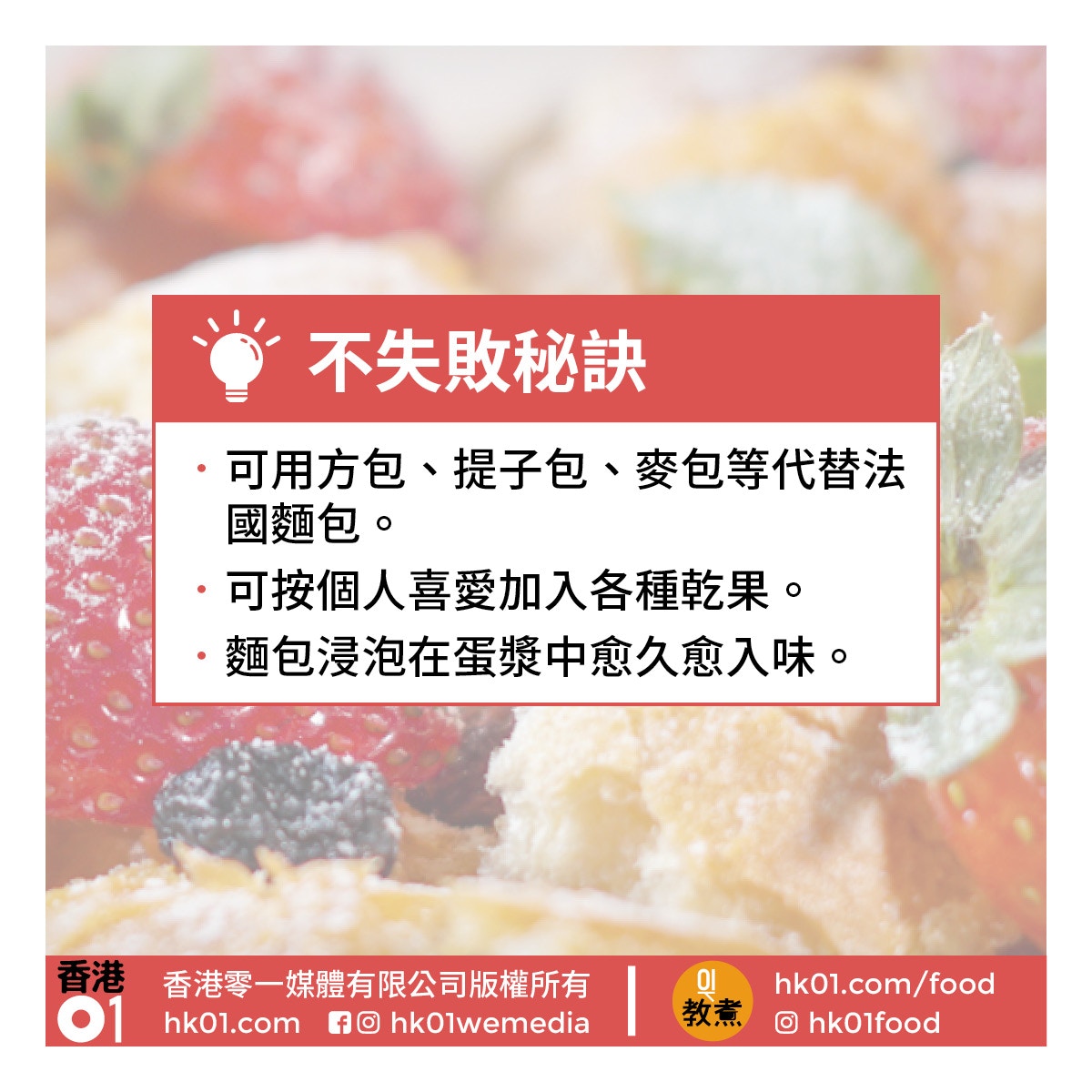 【士多啤梨麵包布丁食譜】外脆內軟香噴噴 新手入廚簡易甜品