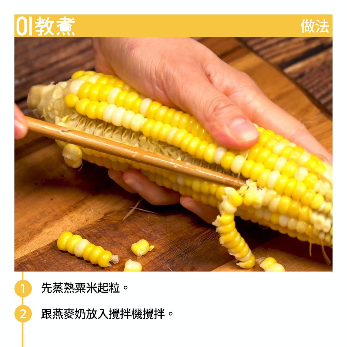 粟米奶露︰清甜滋潤超簡單,剝鮮粟米全靠一隻筷子。