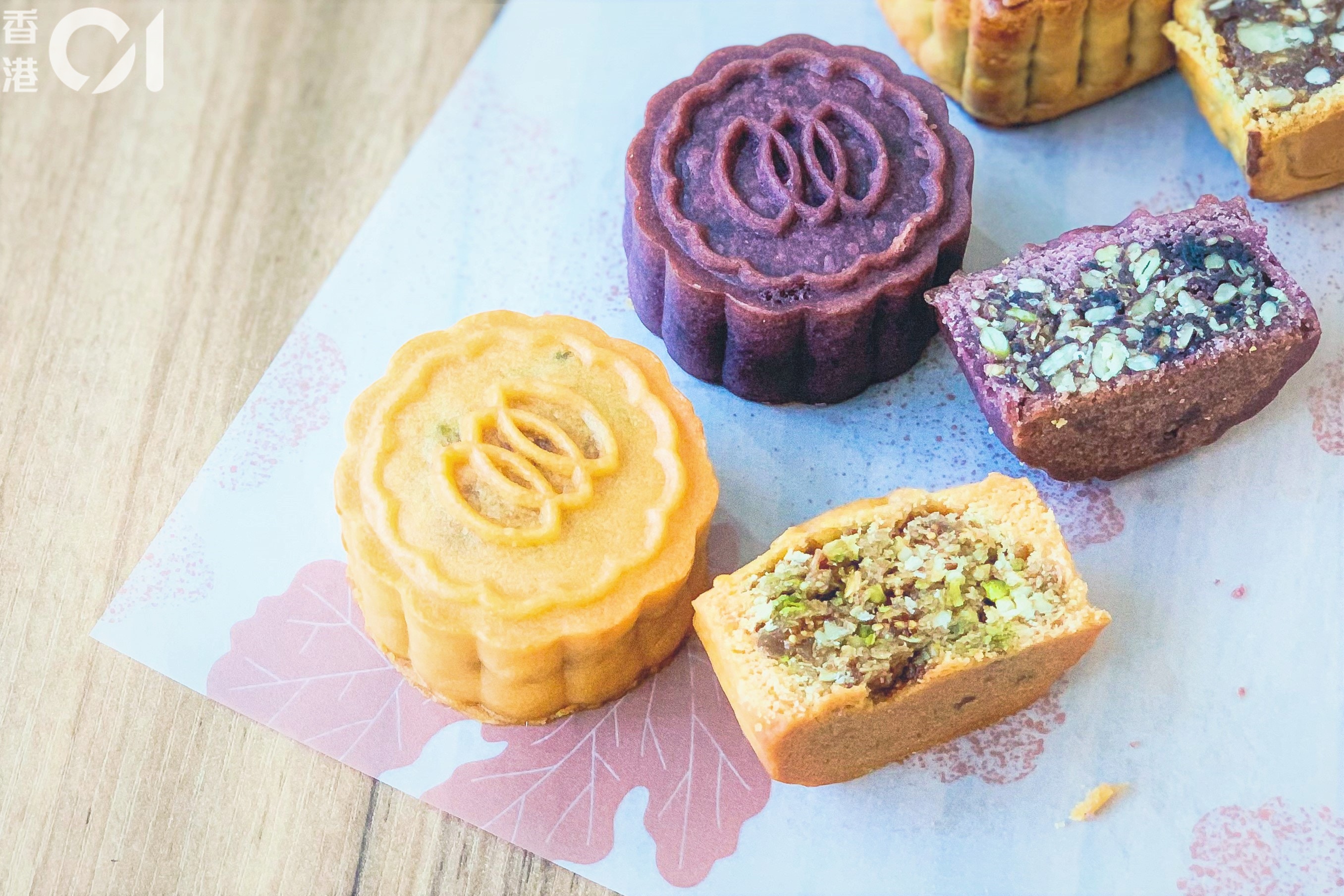 純素月餅,堅果、豆沙、朱古力及紫薯味應有盡有︰