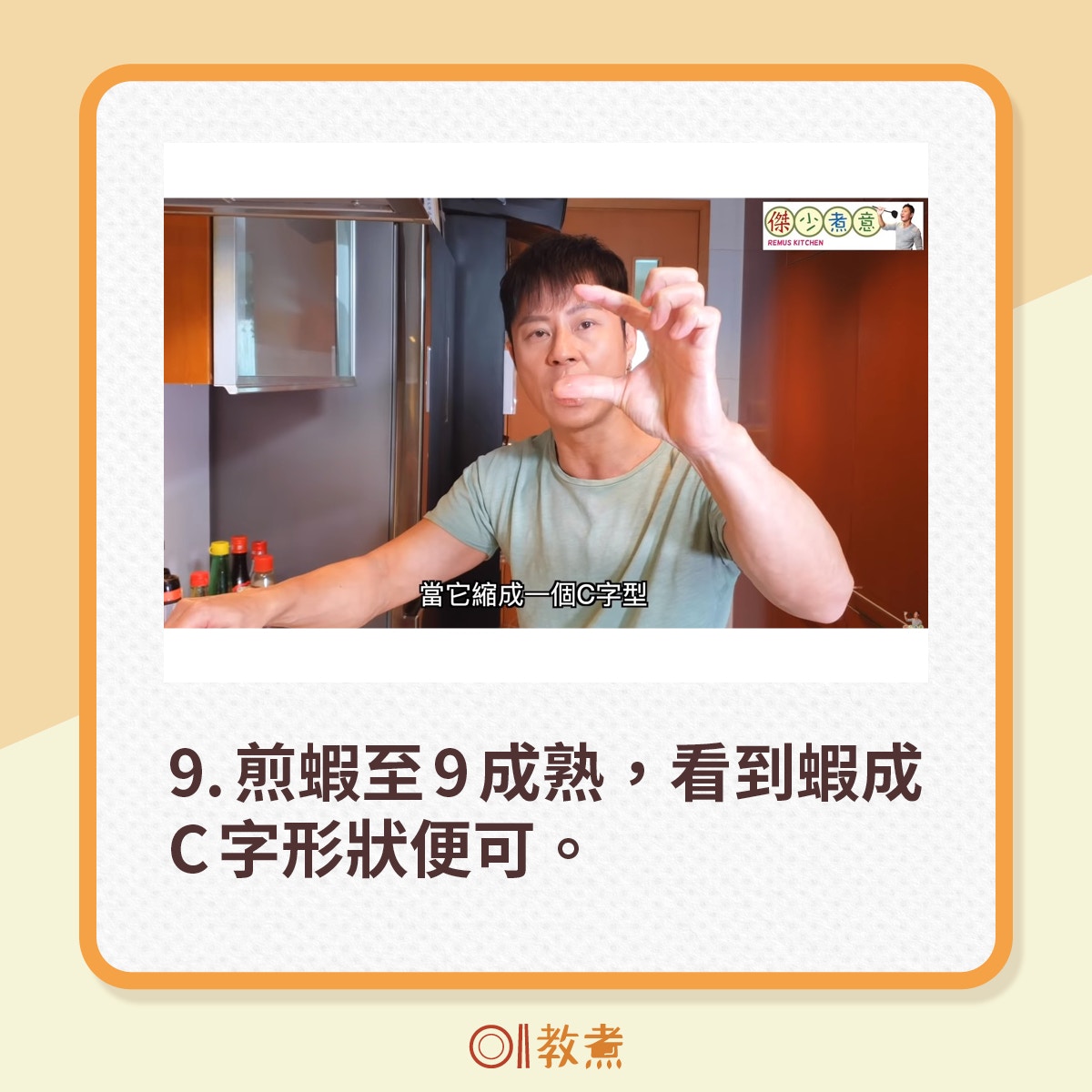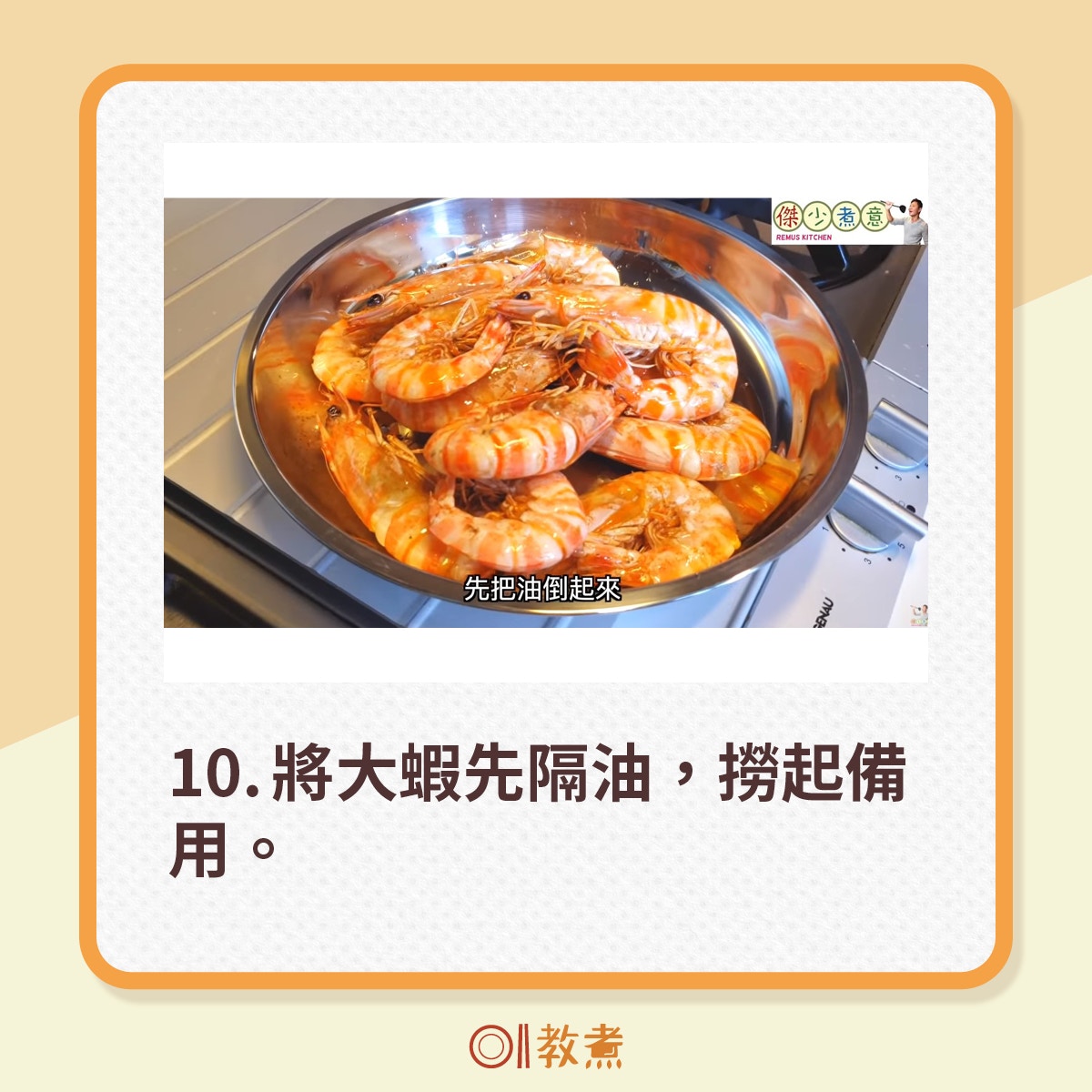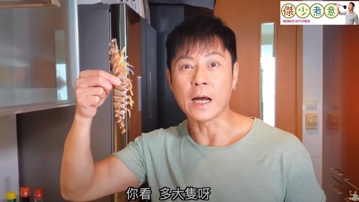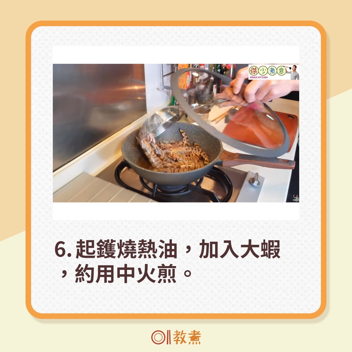 從街市買到的新鮮大蝦,挑走蝦腸,剪走蝦槍,便可起油鑊煎蝦。(傑少煮意影片截圖