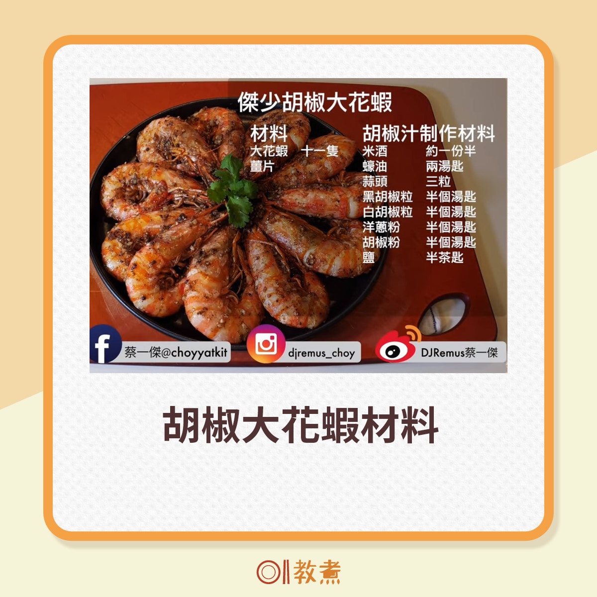按圖有「胡椒大花蝦」的做法、材料及傑少入廚貼士︰