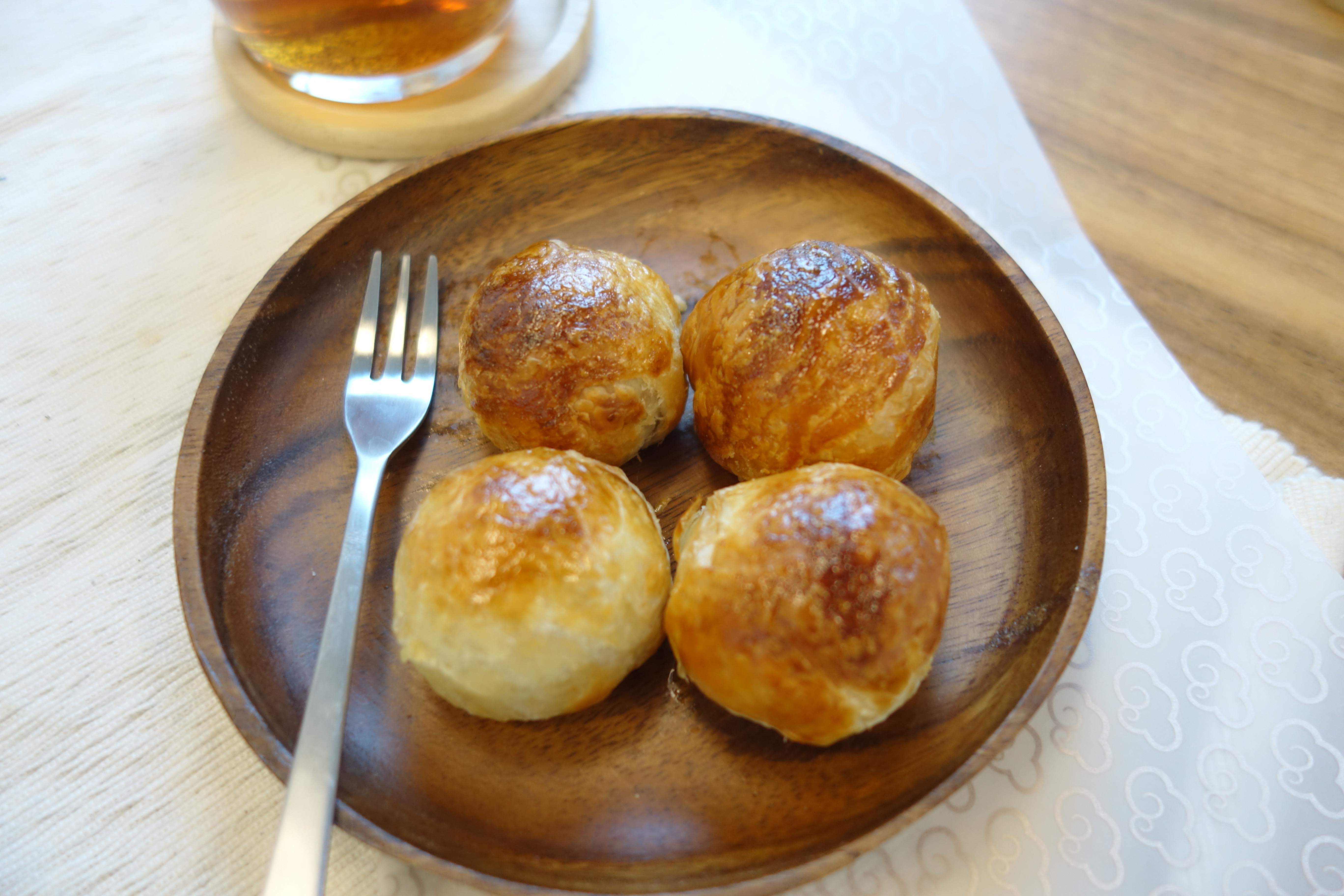 中秋節不只月餅是必吃,還有湯圓!湯圓除了加薑湯煮成糖水、糖不甩外,更可以中西合璧變成酥皮湯圓!筆者初次品嘗過後,覺得它是甜點版的台灣月亮酥,它與月亮酥一樣擁有牛油酥皮的外層,不過包裹著的並不是紅豆餡和鹹蛋黃,而是煙韌的糯米皮及餡料。酥皮湯圓的口感過癮,外型圓圓的像極了月亮,絕對是一起賞月品茶的最佳配搭。而且做法非常容易,在中秋節能與家人一起樂悠悠製作飯後甜點,也是生活中的小樂趣。