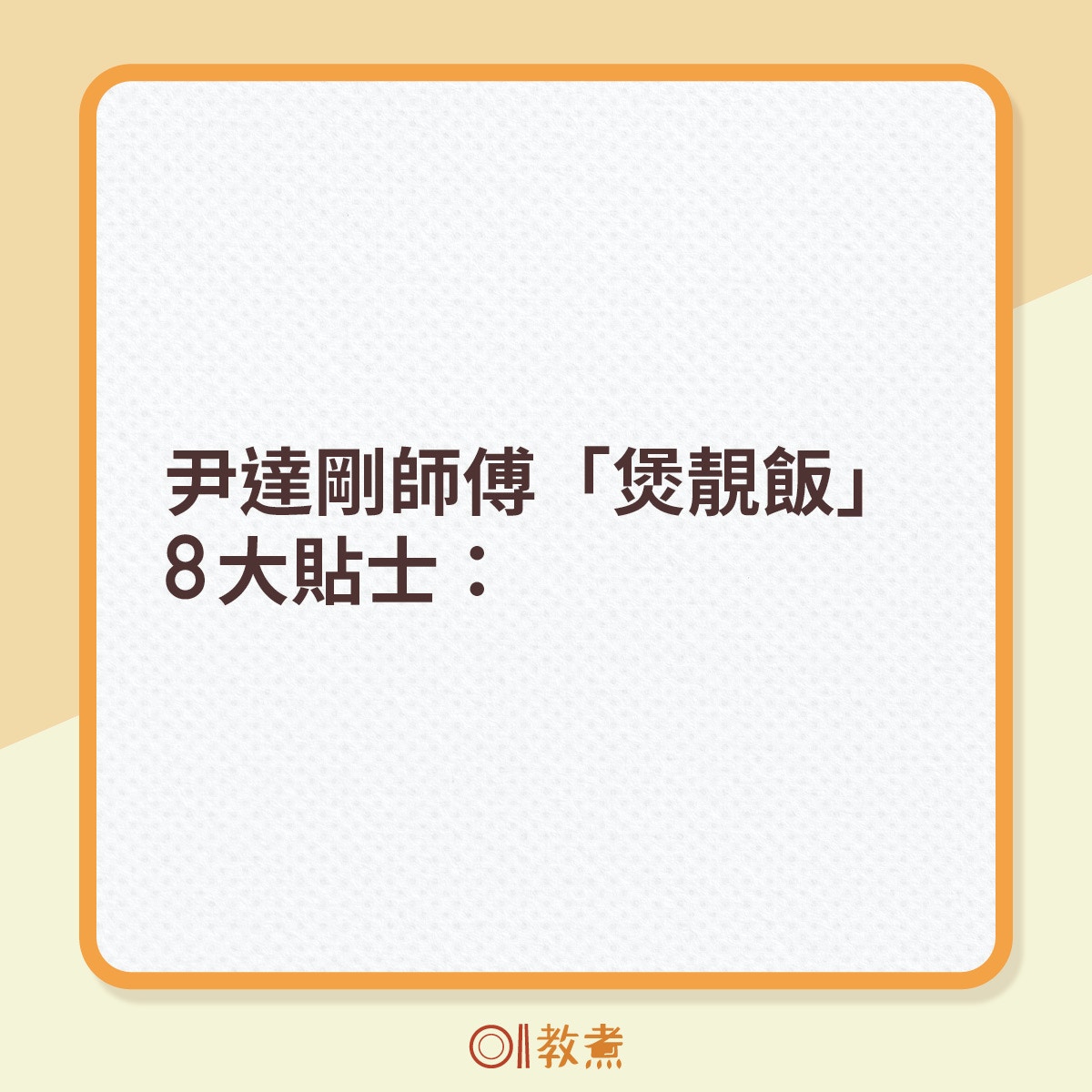 尹達剛師傅「煲靚飯」8大貼士