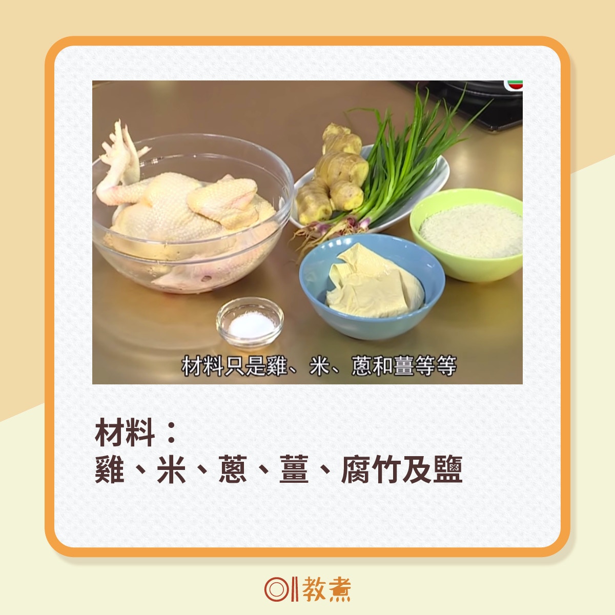 按圖看Lisa的爸爸謝廣勝還原大埔「謝華記雞粥」的步驟及貼士:
